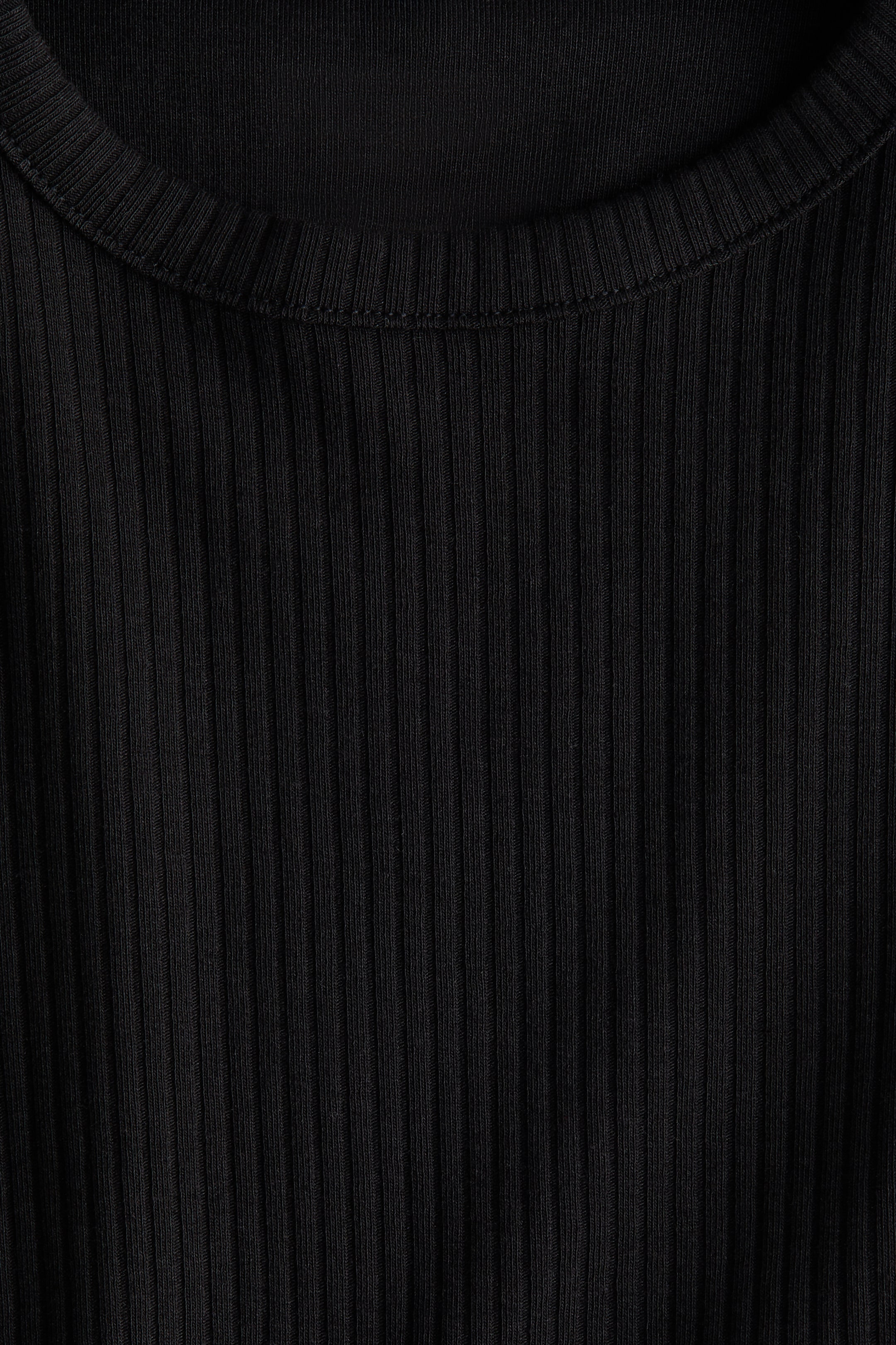 Футболка с круглым вырезом и короткими рукавами, изготовленная из мягкого хлопка и трикотажа в рубчик.