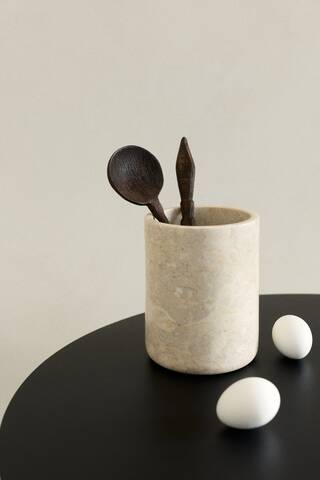 Идеальная мраморная подставка для столовых приборов, позволяющая стильно хранить кухонные принадлежности. Поскольку мрамор — натуральный материал, цвет и текстура каждого изделия могут отличаться.