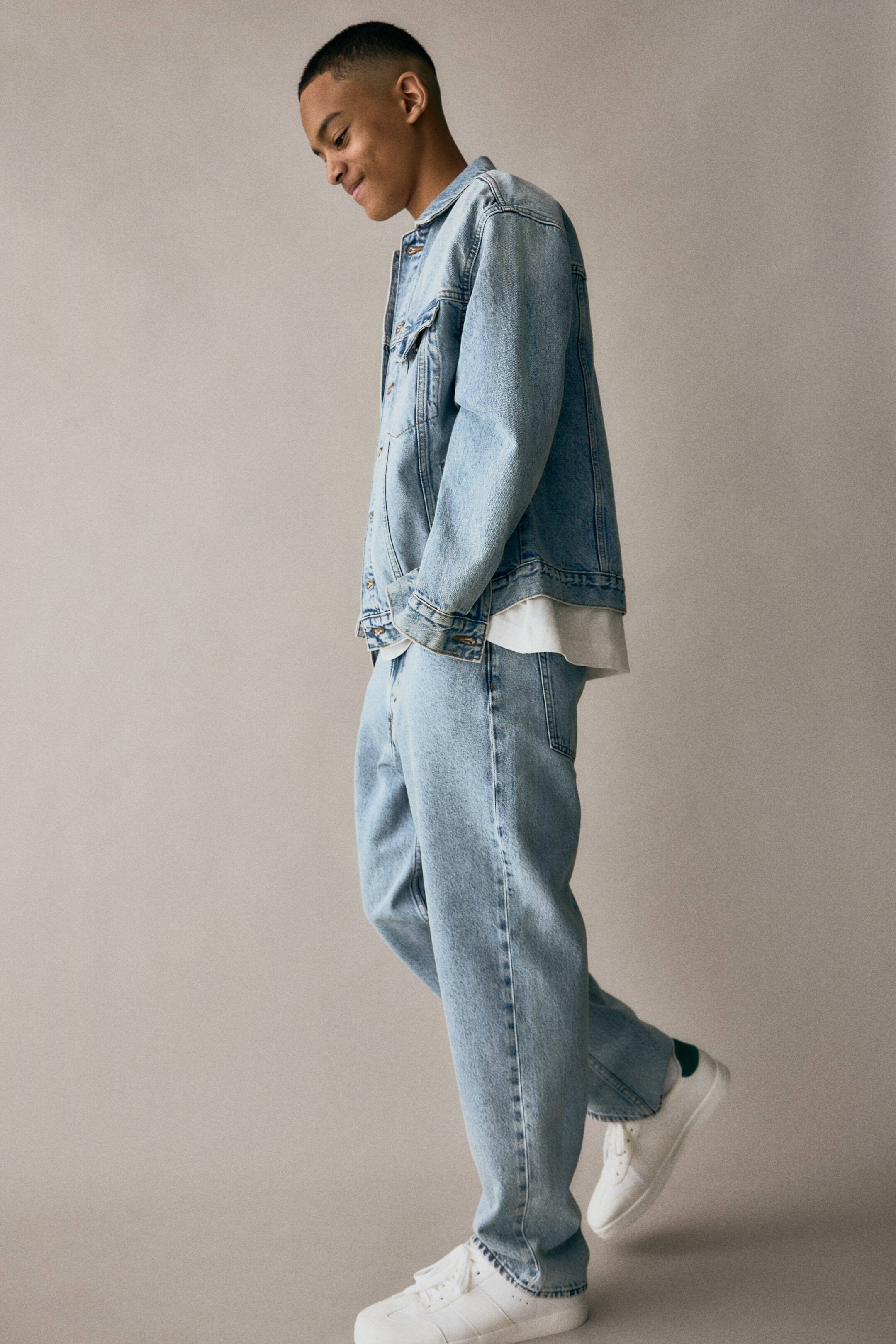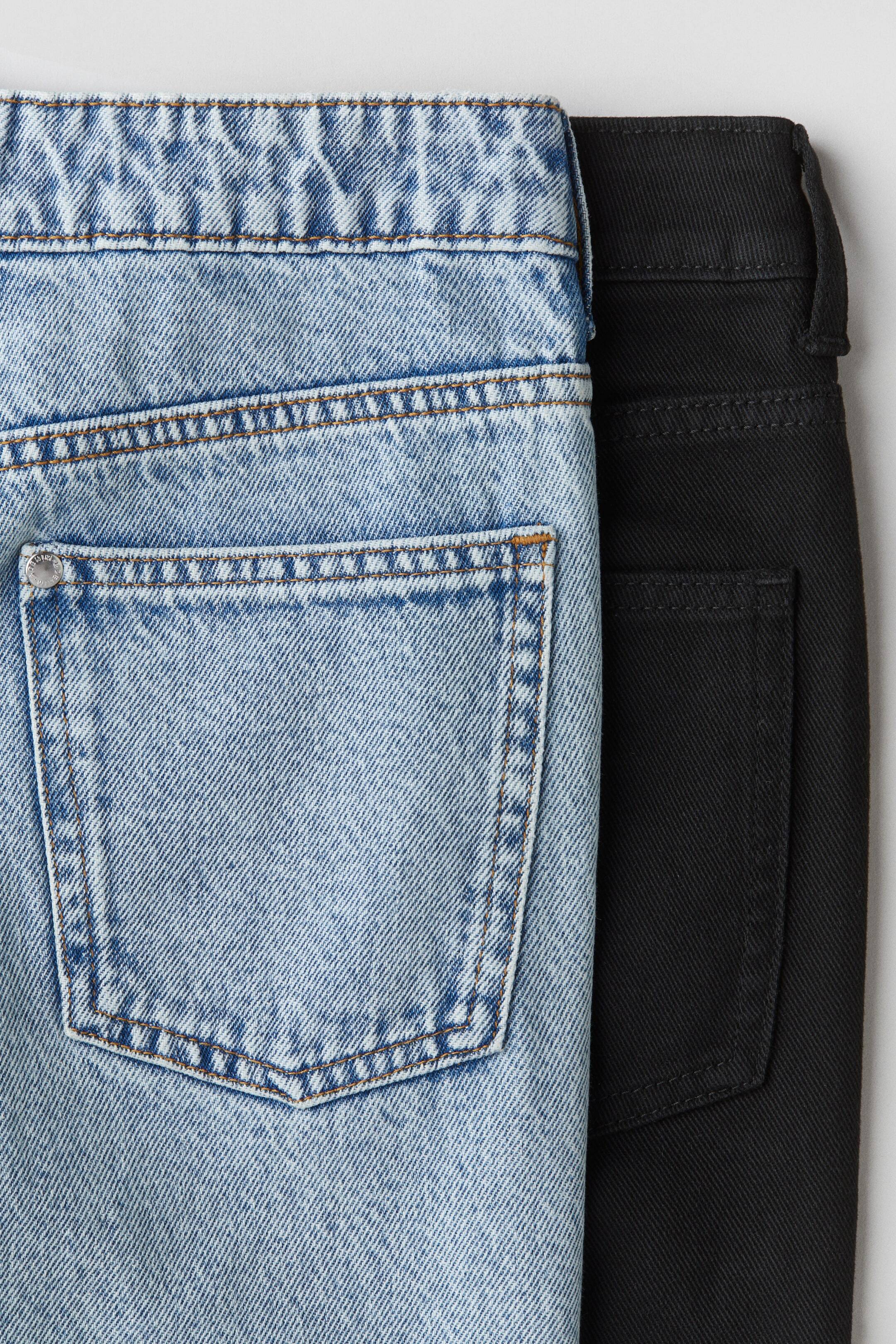 Джинсы с пятью карманами из стираного хлопкового денима. Свободный крой в бедрах, прямые штанины. Регулируемая талия на резинке, застёжка на молнию и пуговицы для идеальной посадки.