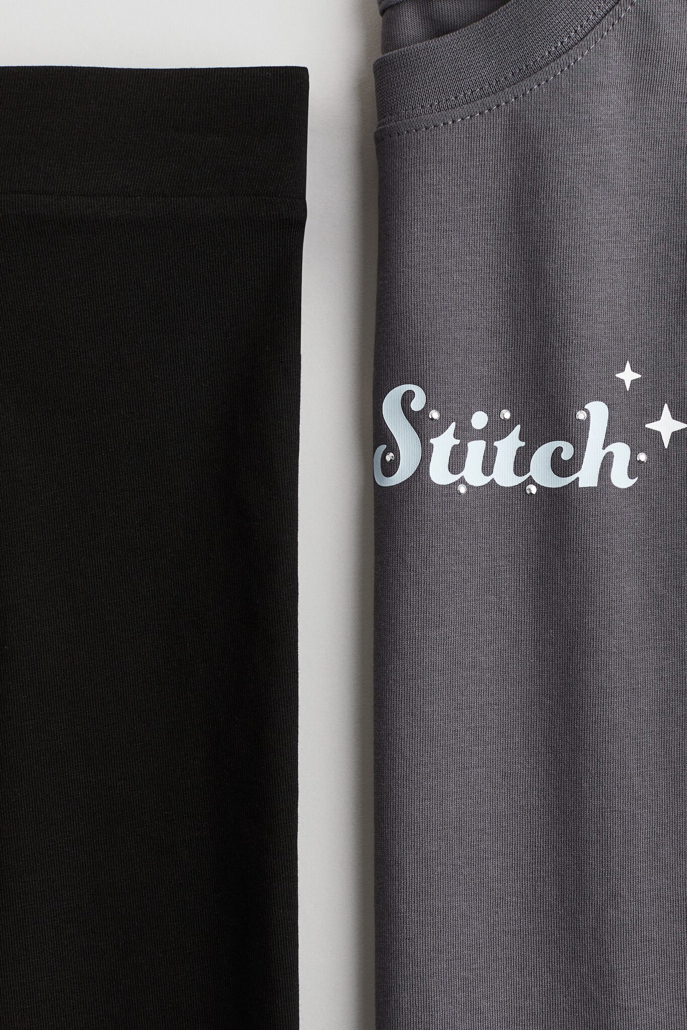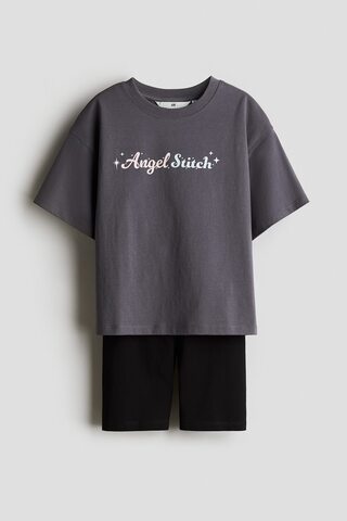 H&M Комплект из футболки и шорт с принтом, темно-серый