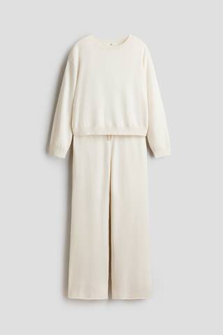 H&M Комплект из мягкого тонкого свитера и брюк, кремовый