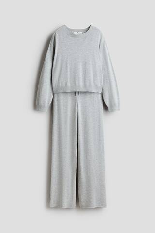 H&M Комплект из мягкого тонкого свитера и брюк, светло-серый