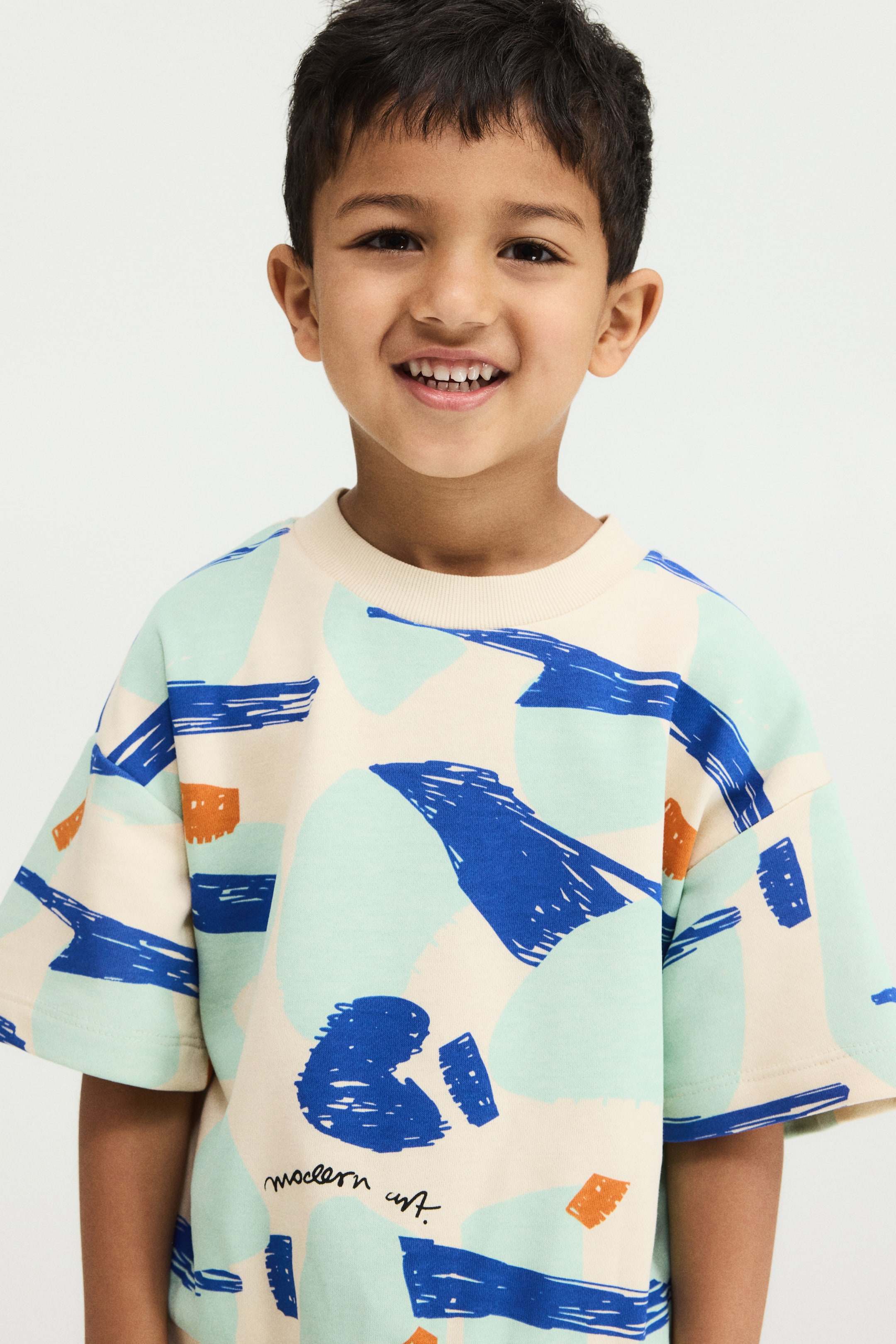 H&M Комплект из толстовки и шорт с принтом, белый/синий