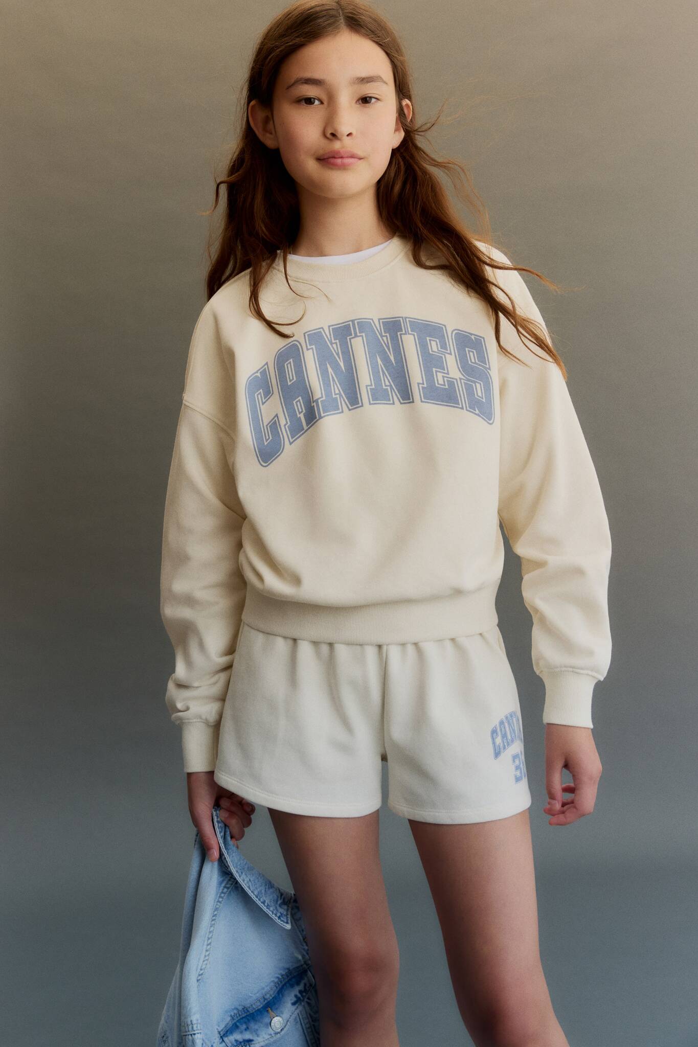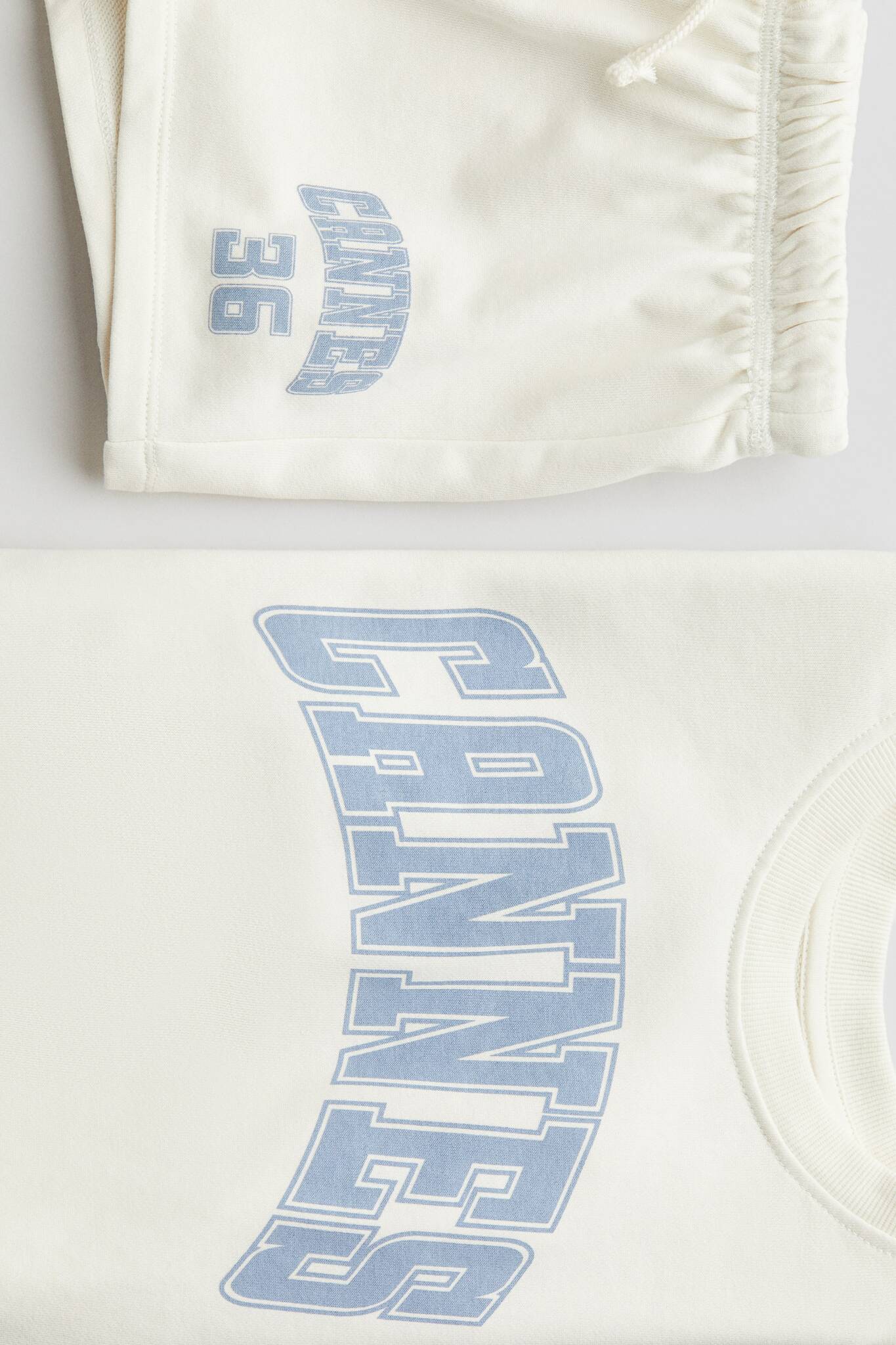 H&M Комплект из толстовки и шорт с принтом, кремовый
