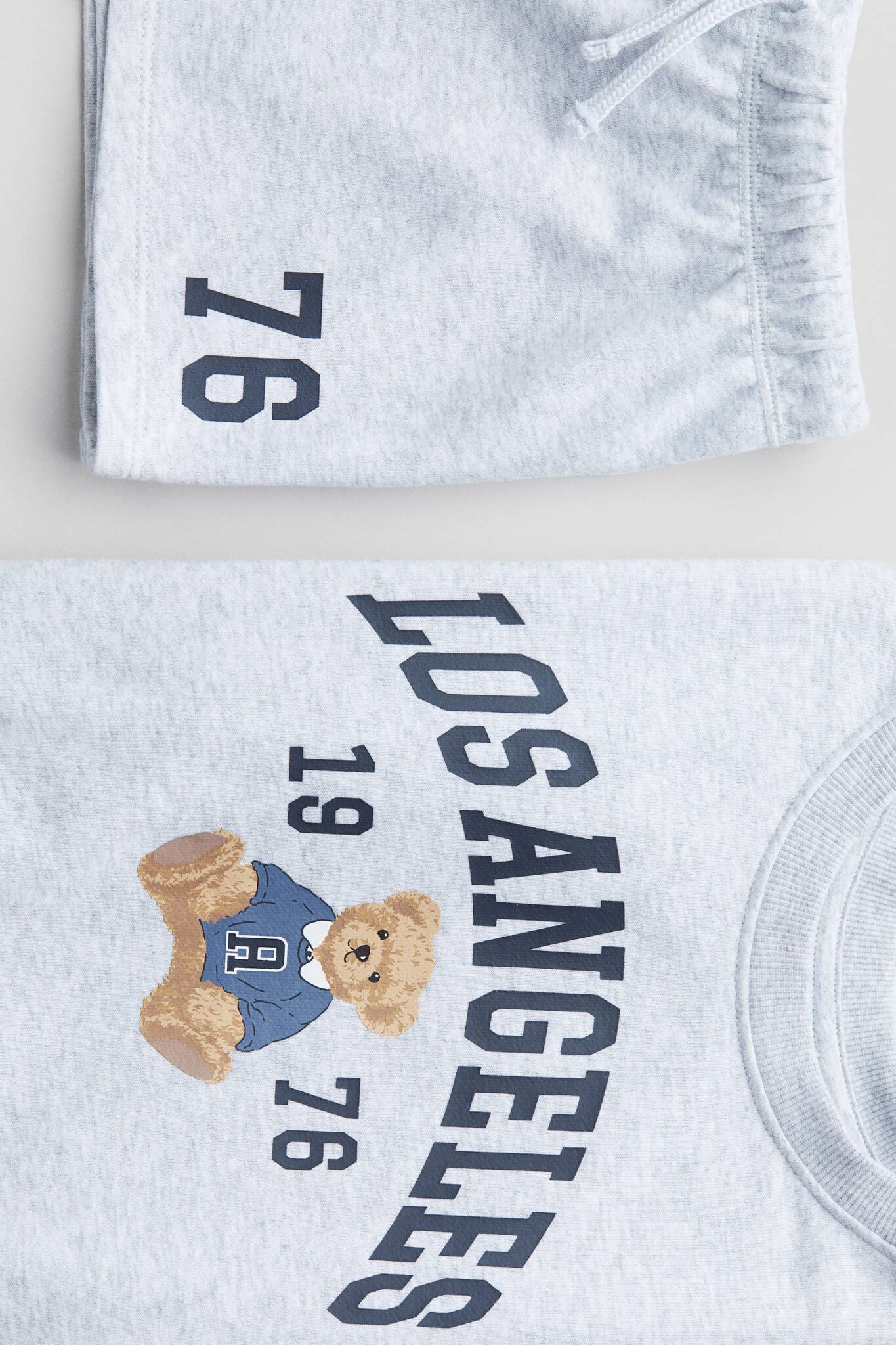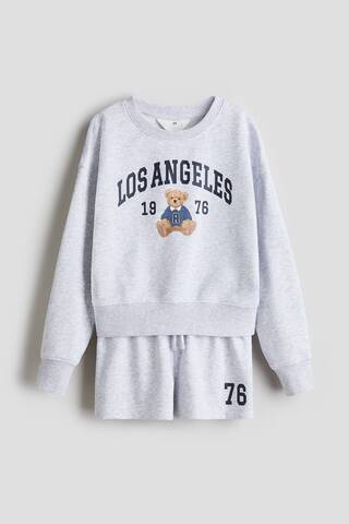 H&M Комплект из толстовки и шорт с принтом, светло-серый меланж