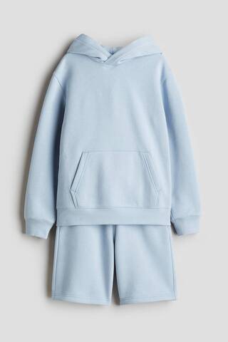 H&M Комплект из толстовки с капюшоном и шорт, светло-голубой