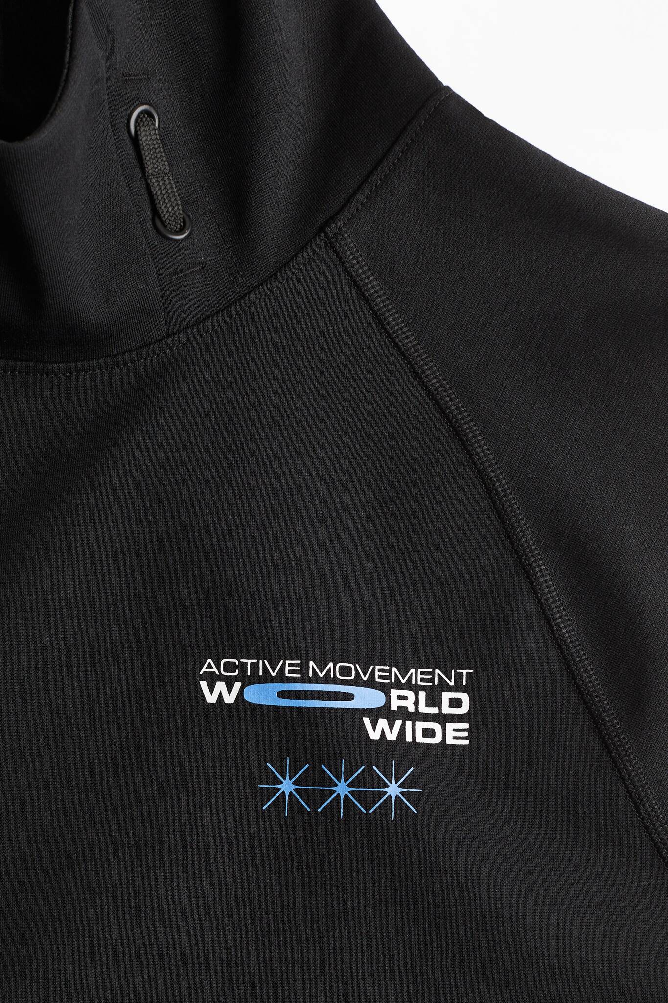 Спортивный комплект из топа с капюшоном и шорт из мягкого трикотажа. Топ на сетчатой подкладке с декоративной кулиской, рукава-крылышки реглан и плавно скруглённый нижний край. Шорты с резинкой на талии, затягивающейся шнурком, потайными боковыми карманами и сетчатыми вентиляционными вставками по бокам.