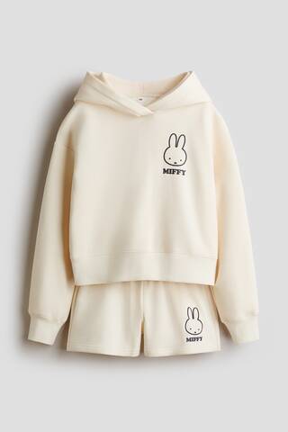 H&M Комплект толстовки с капюшоном и шорт, светло-бежевый