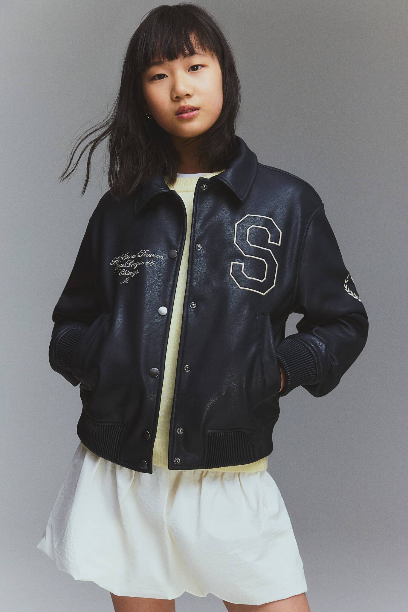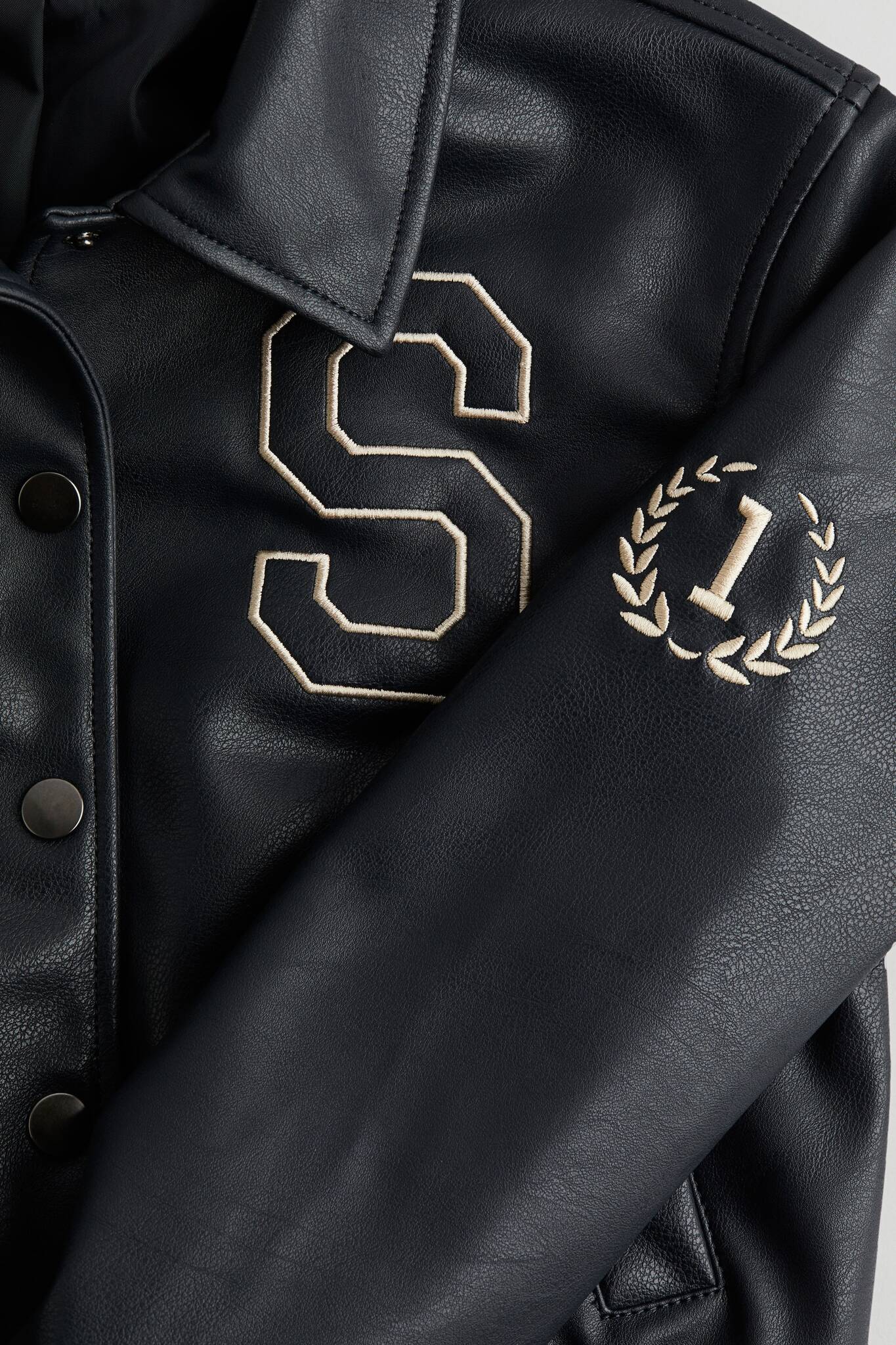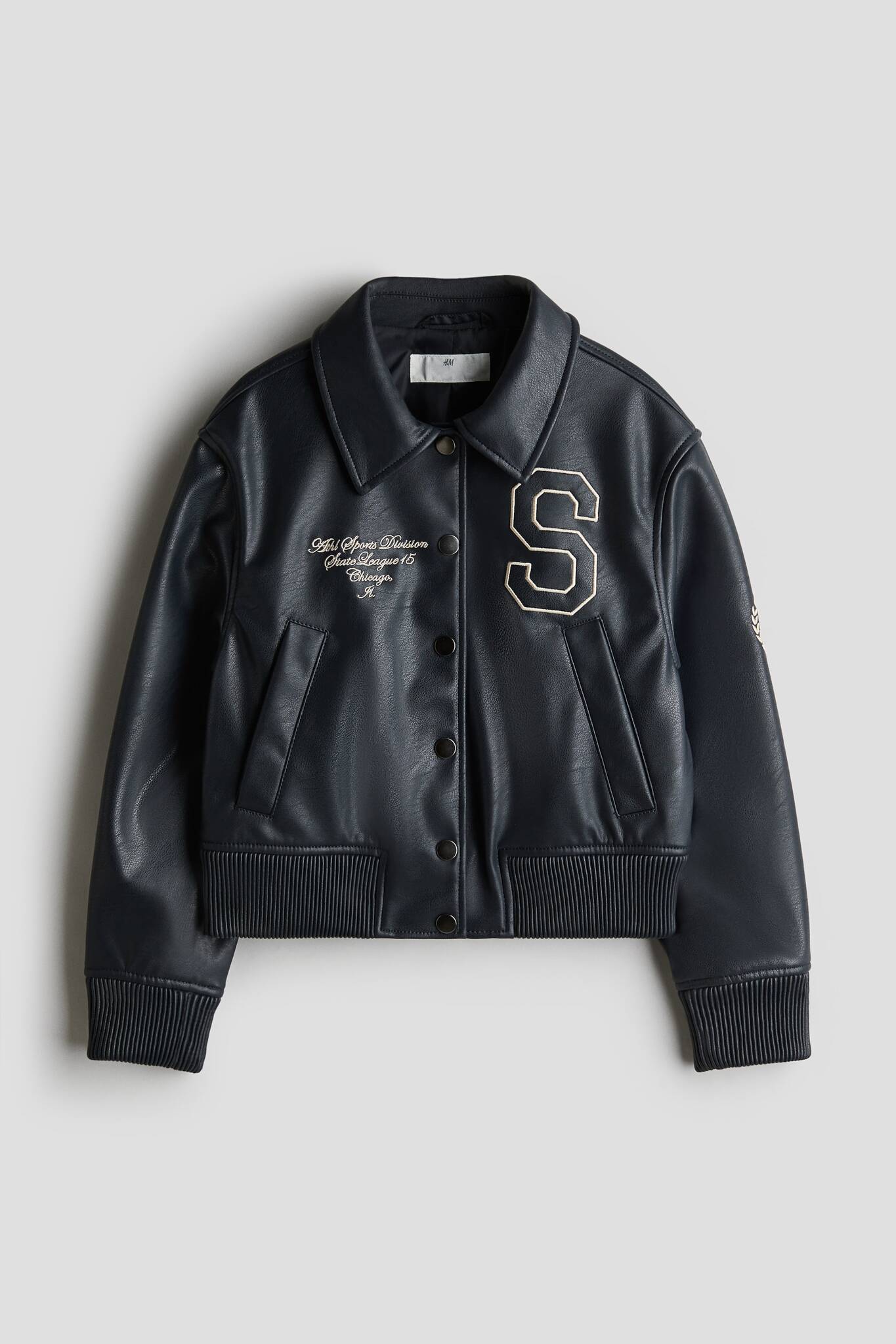 Бейсбольная куртка с эмблемой. Отложной воротник, застёжка на кнопки спереди, прорезные передние карманы на потайных кнопках. Ребристые манжеты и подол. На подкладке.