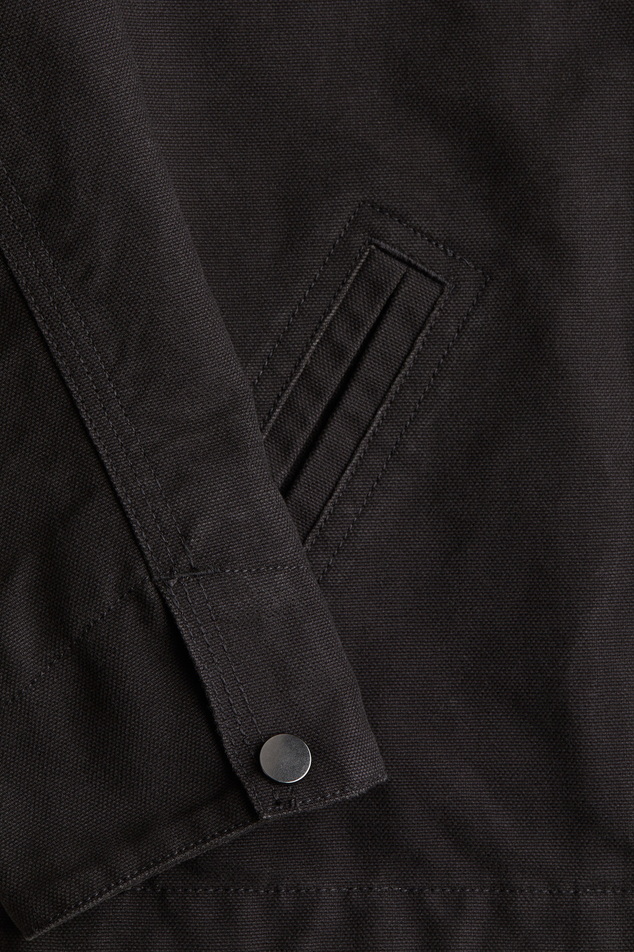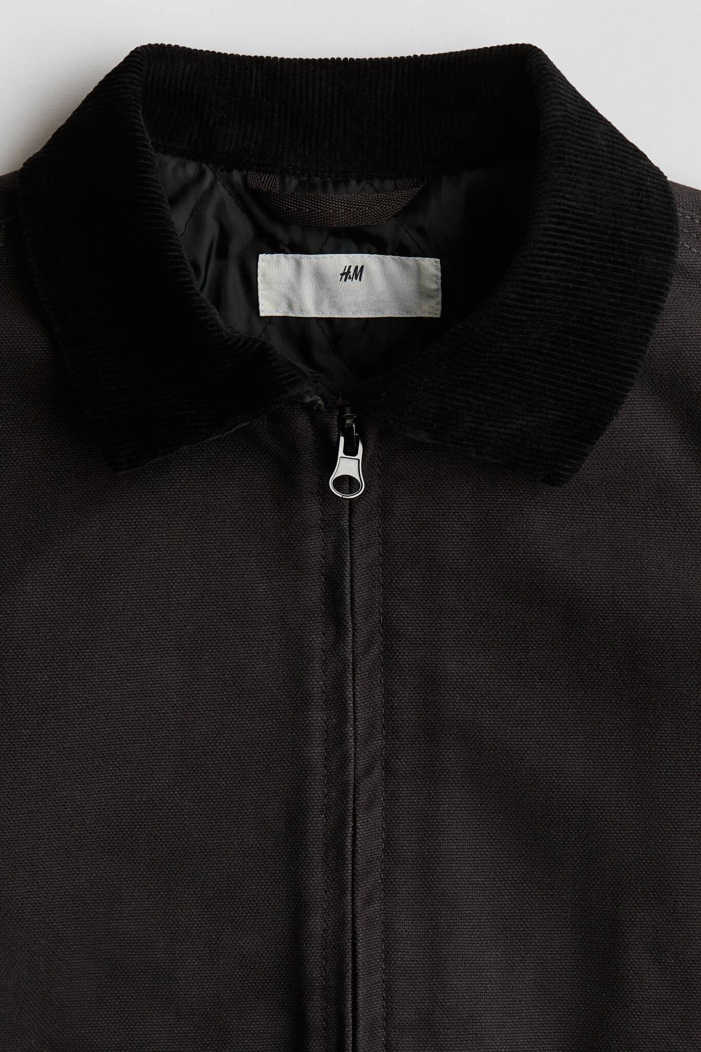 Куртка из лёгкого хлопкового полотна с вельветовым воротником, застёжкой-молнией спереди, прорезными карманами спереди, длинными рукавами и манжетами на пуговицах. На подкладке.