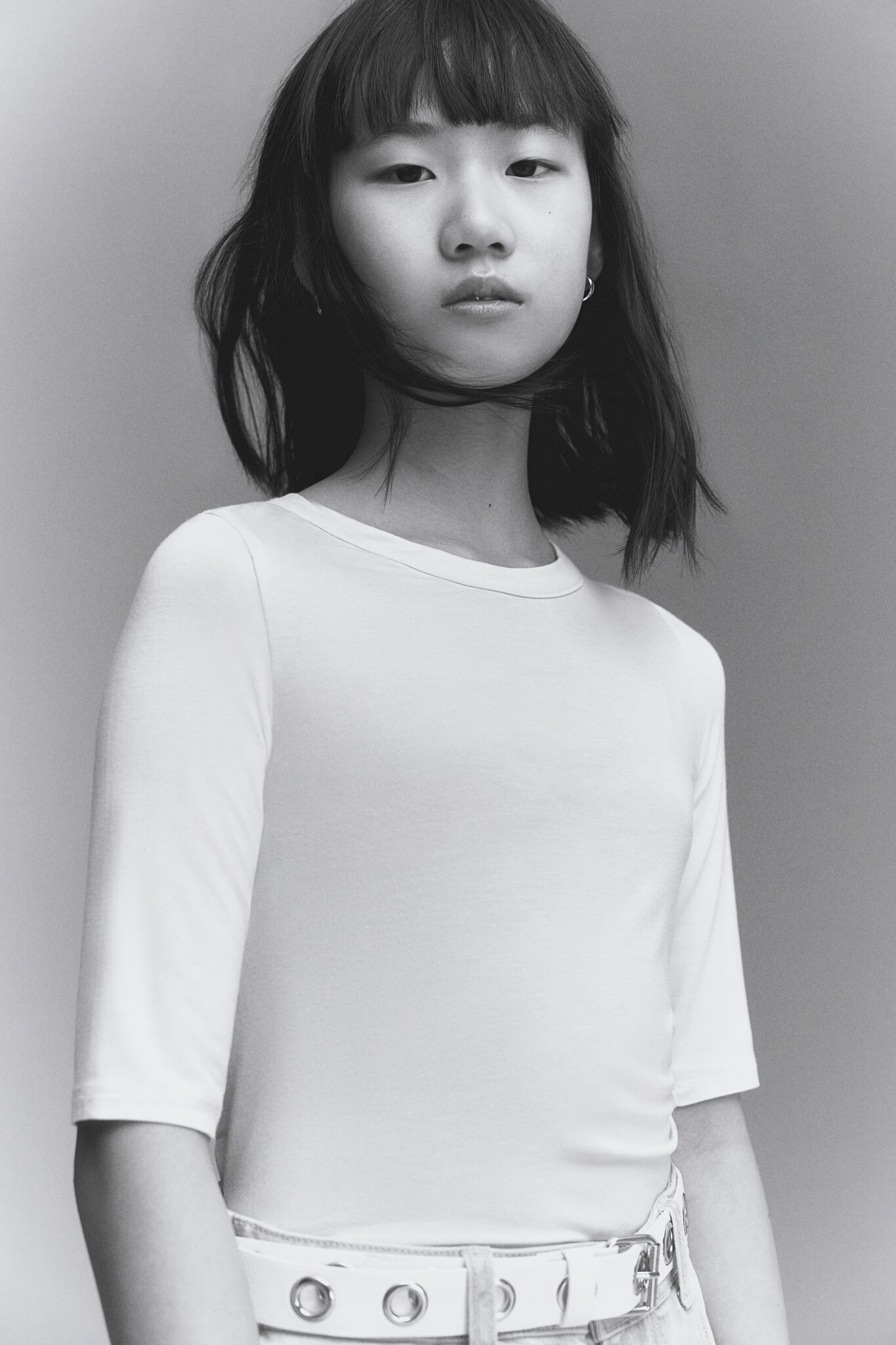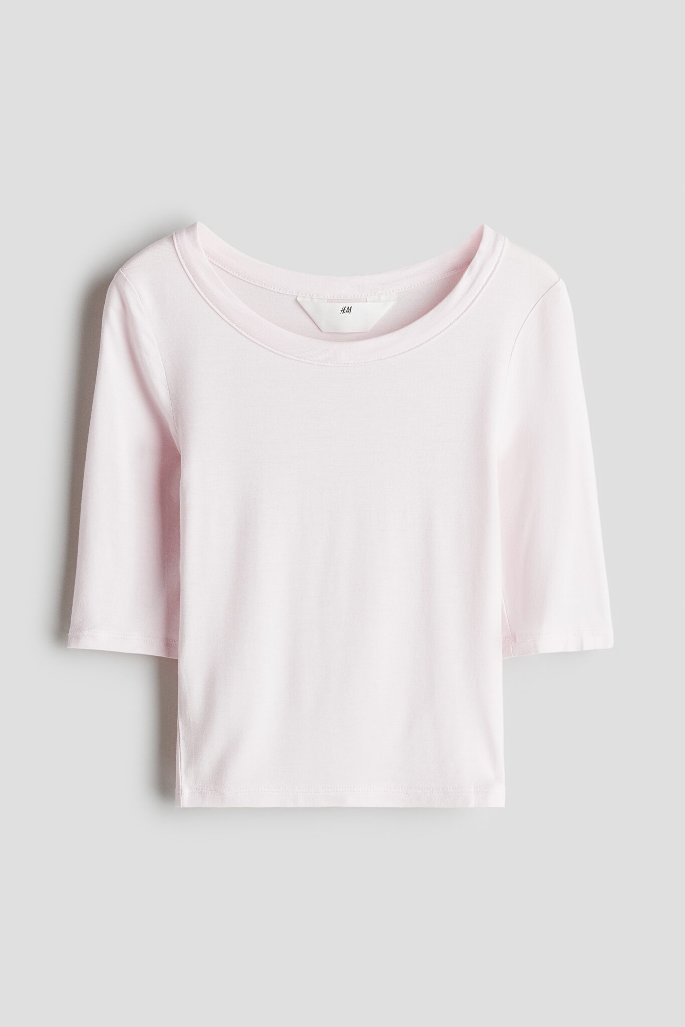 Топ из мягкого вискозного трикотажа с широким круглым вырезом и рукавами до локтя.