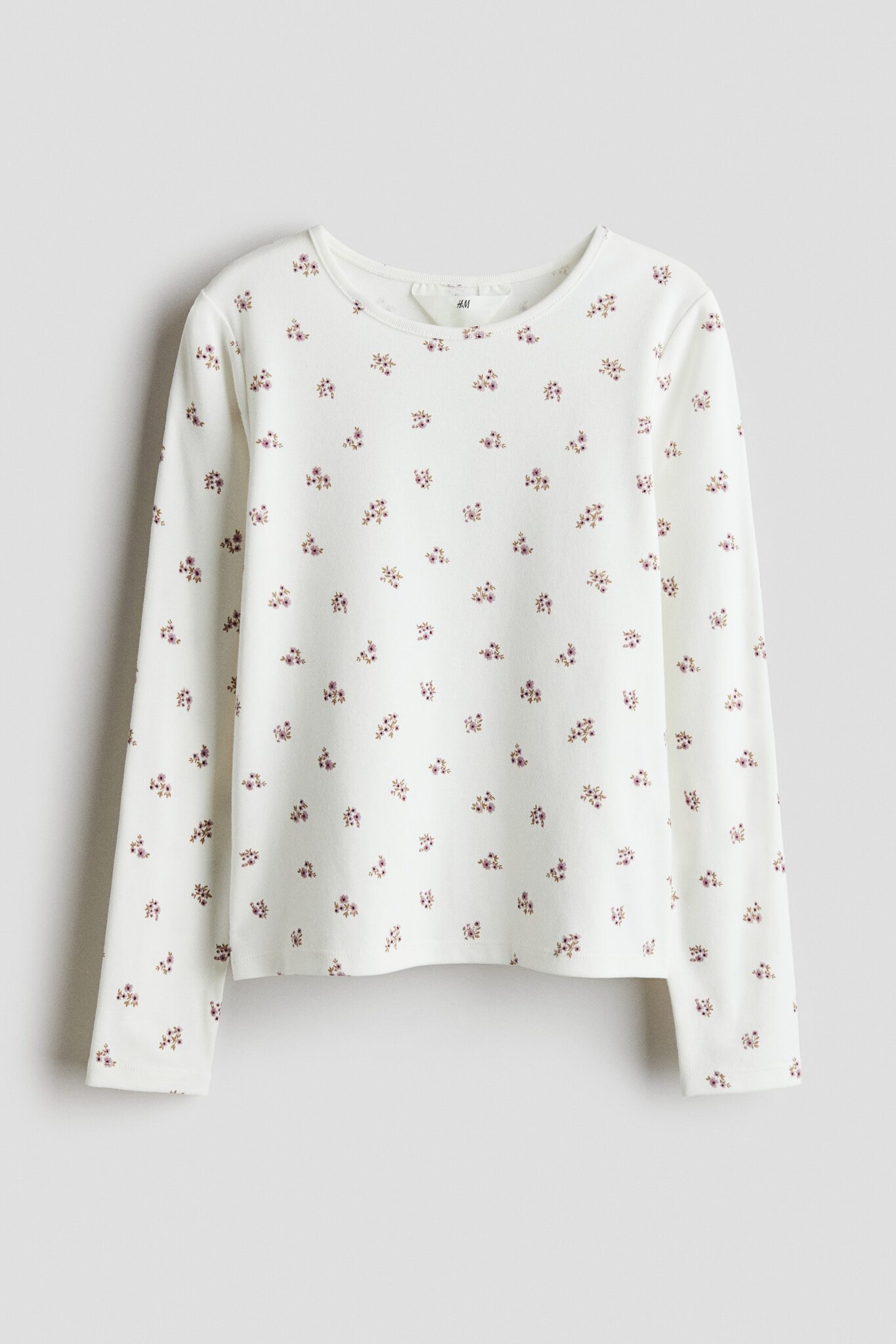 H&M Лонгслив из хлопка и джерси с длинными рукавами, белый