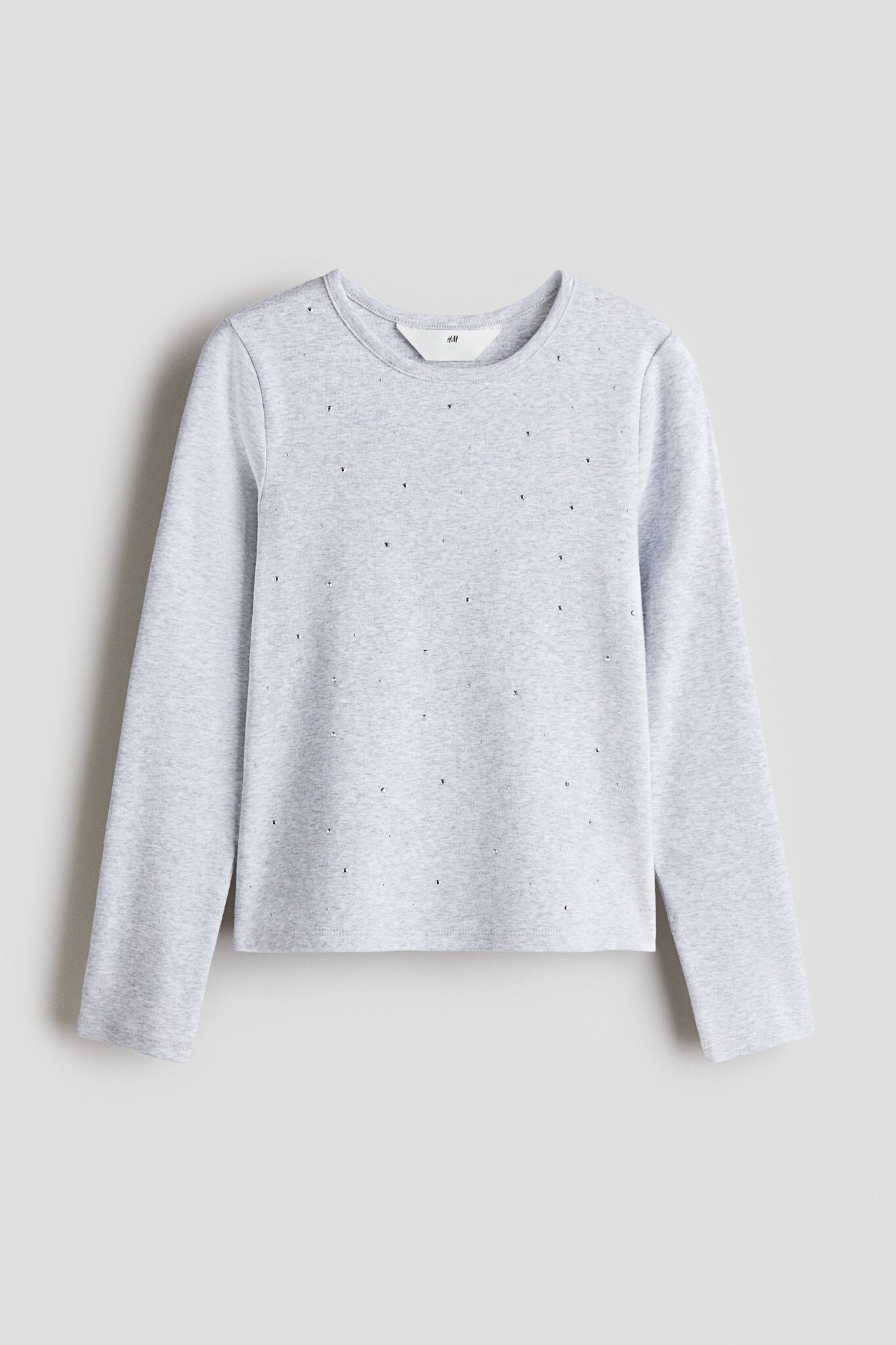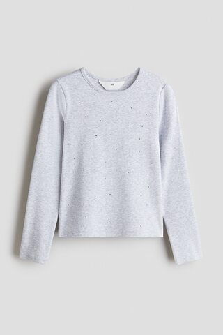 H&M Лонгслив из хлопка и джерси с длинными рукавами, светло-серый