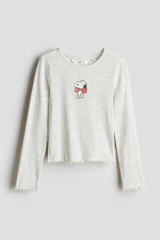 H&M Лонгслив из хлопка с принтом, светло-серый меланж