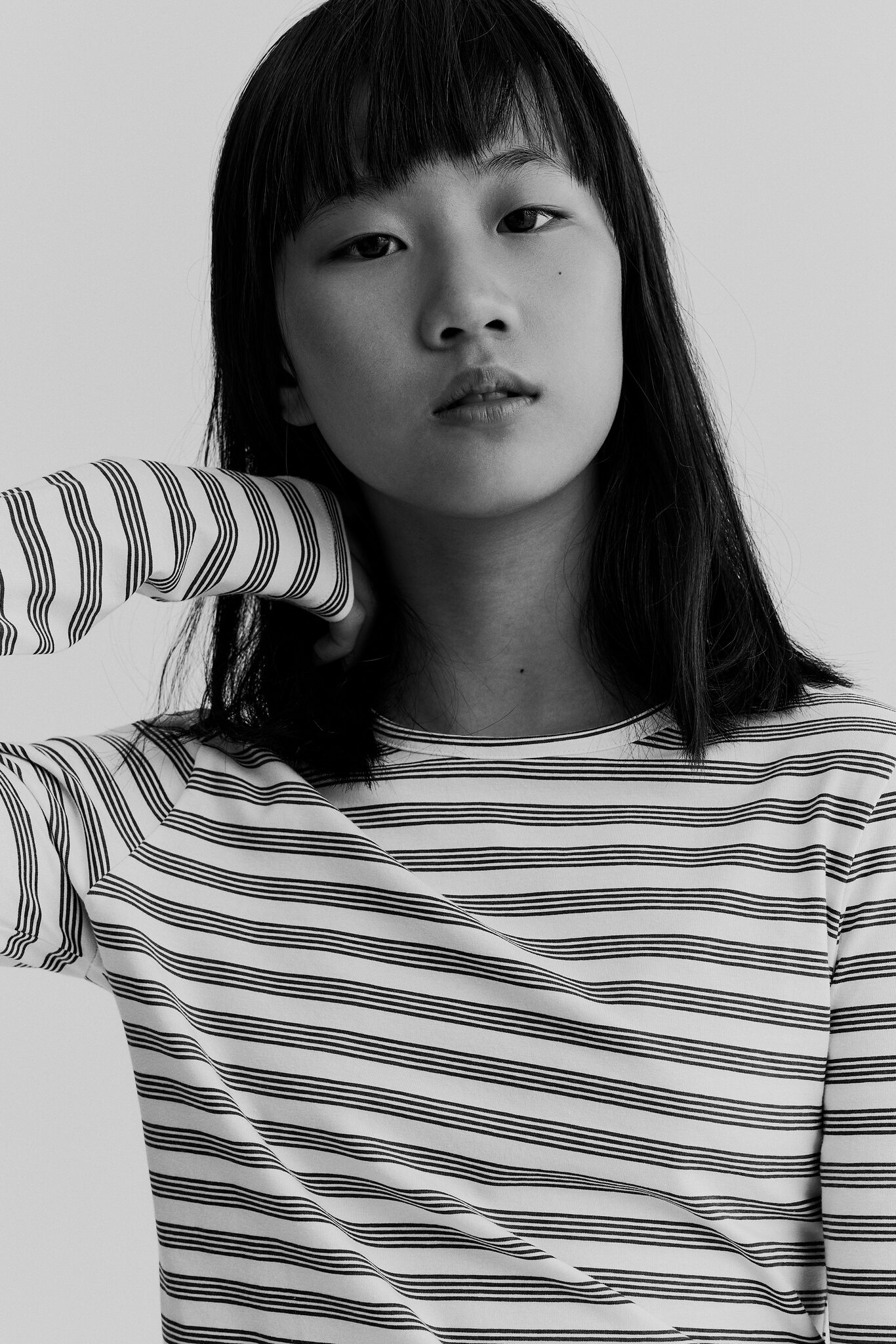 Лонгслив из мягкого хлопкового трикотажа с круглым вырезом, длинными рукавами и прямым подолом.