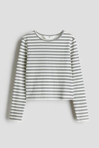 H&M Лонгслив с длинным рукавом с принтом, белый/серый