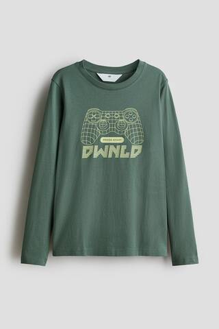 H&M Лонгслив с длинным рукавом, темно-зеленый