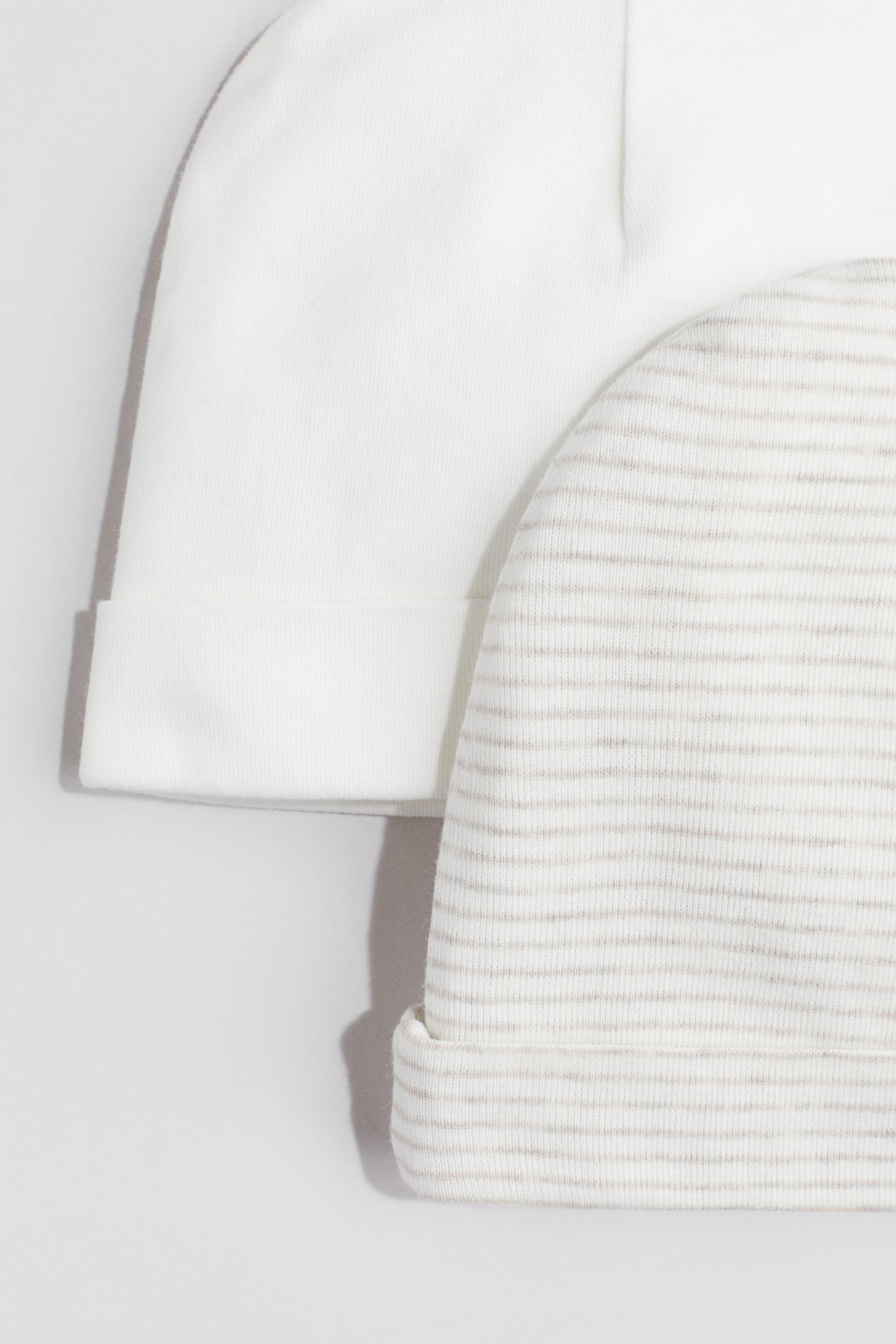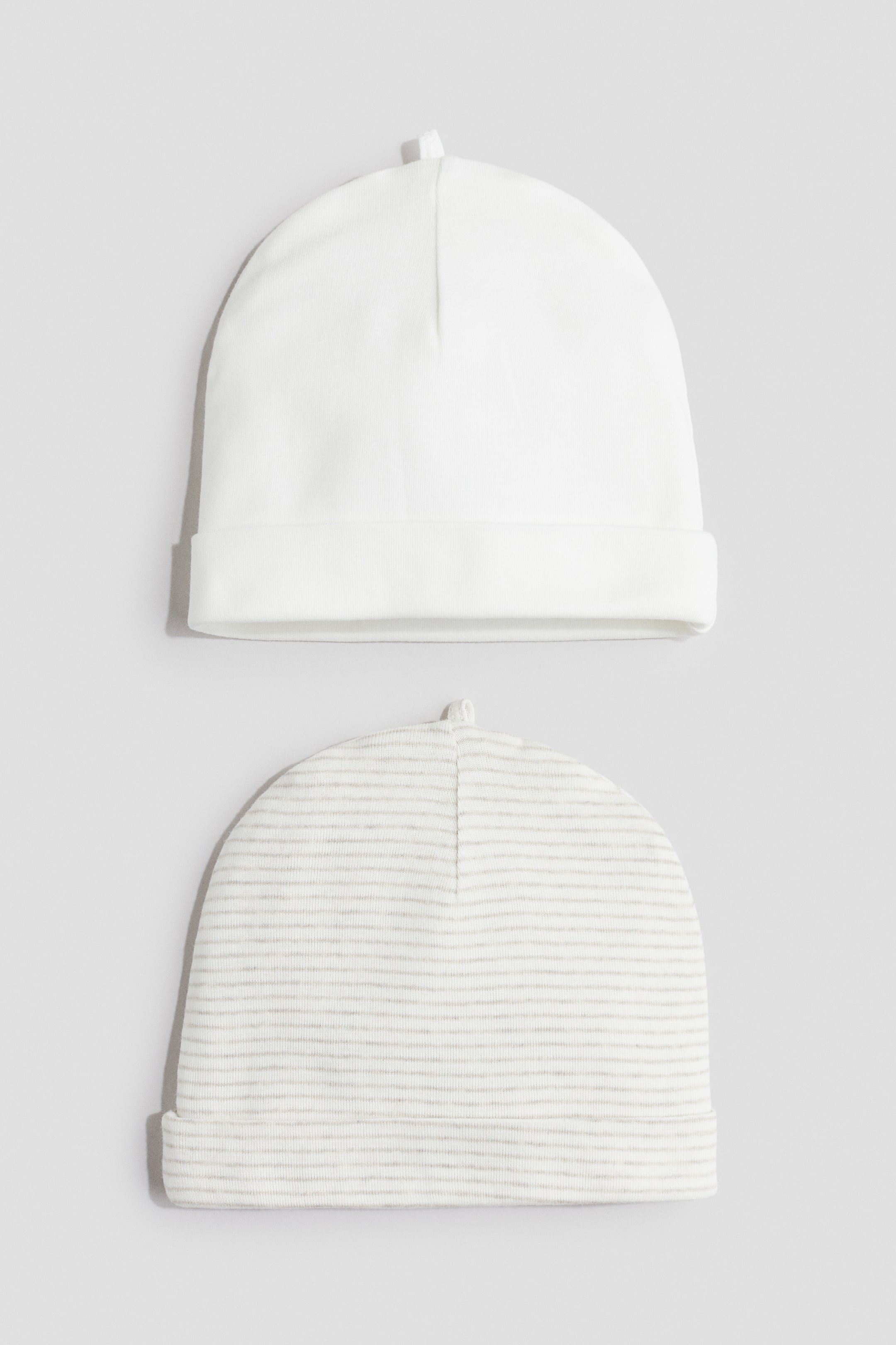 Эти двухслойные шапочки из мягкого хлопкового трикотажа помогут согреть вашего малыша. Края подвернуты.