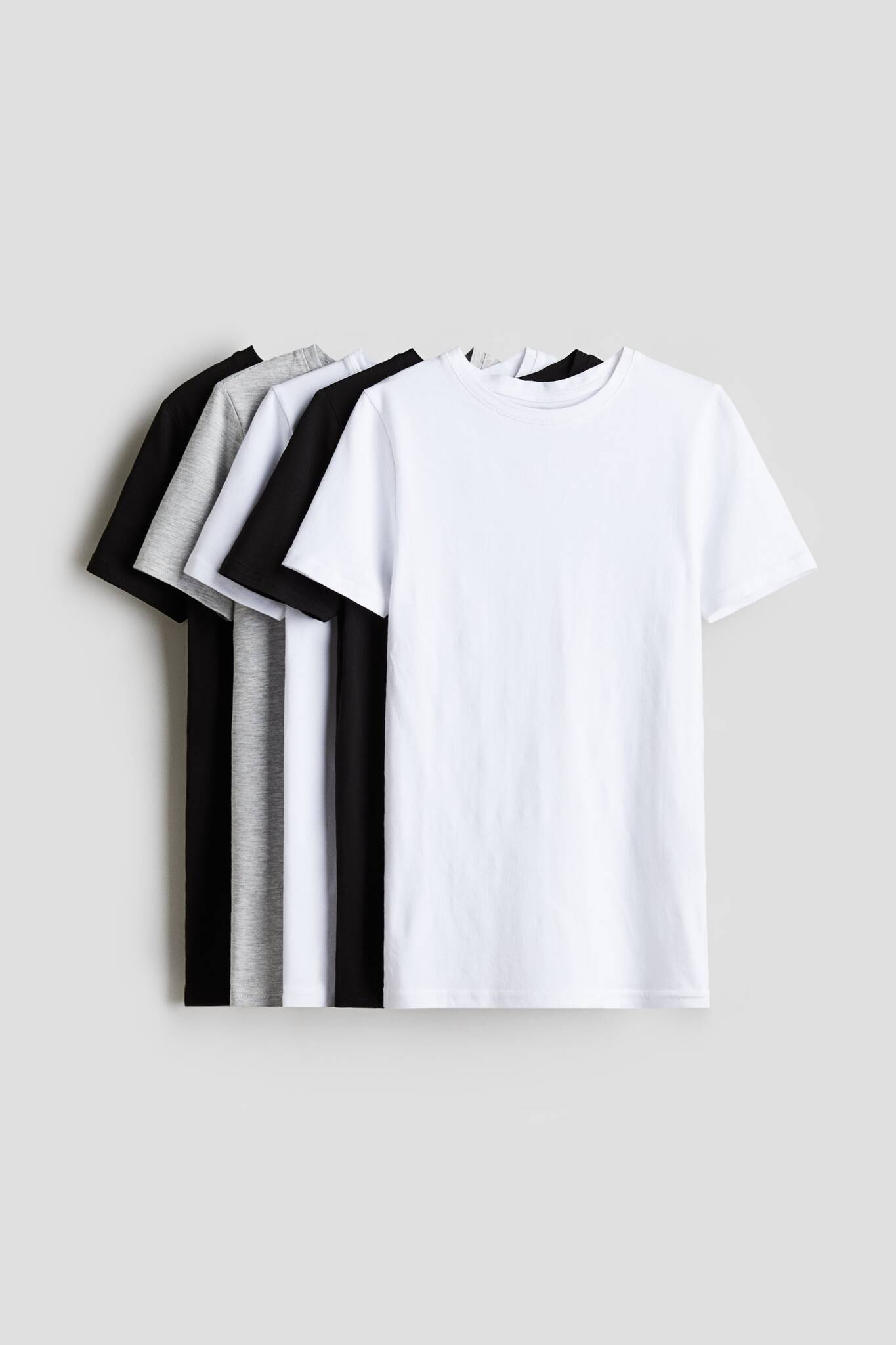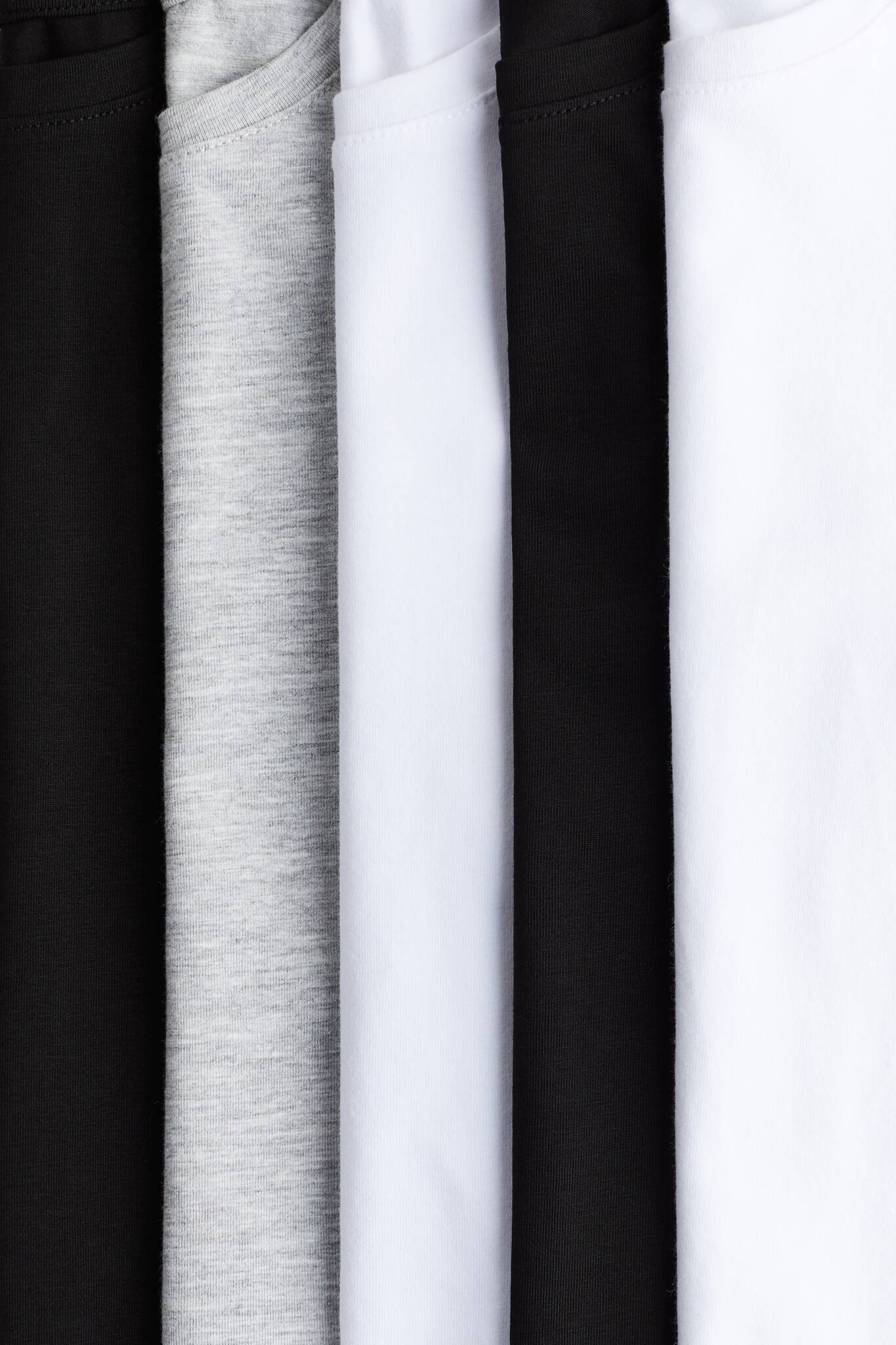 H&M Набор из 5 футболок из хлопкового джерси, белый/серый