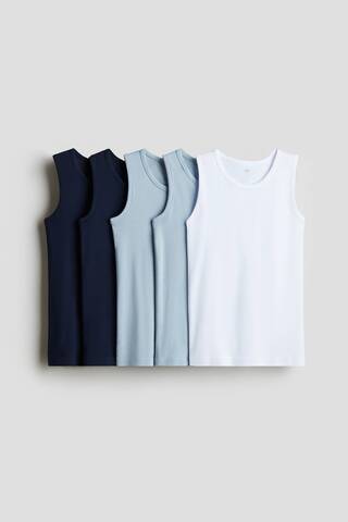 H&M Набор из 5 хлопковых топов без рукавов, темно-синий