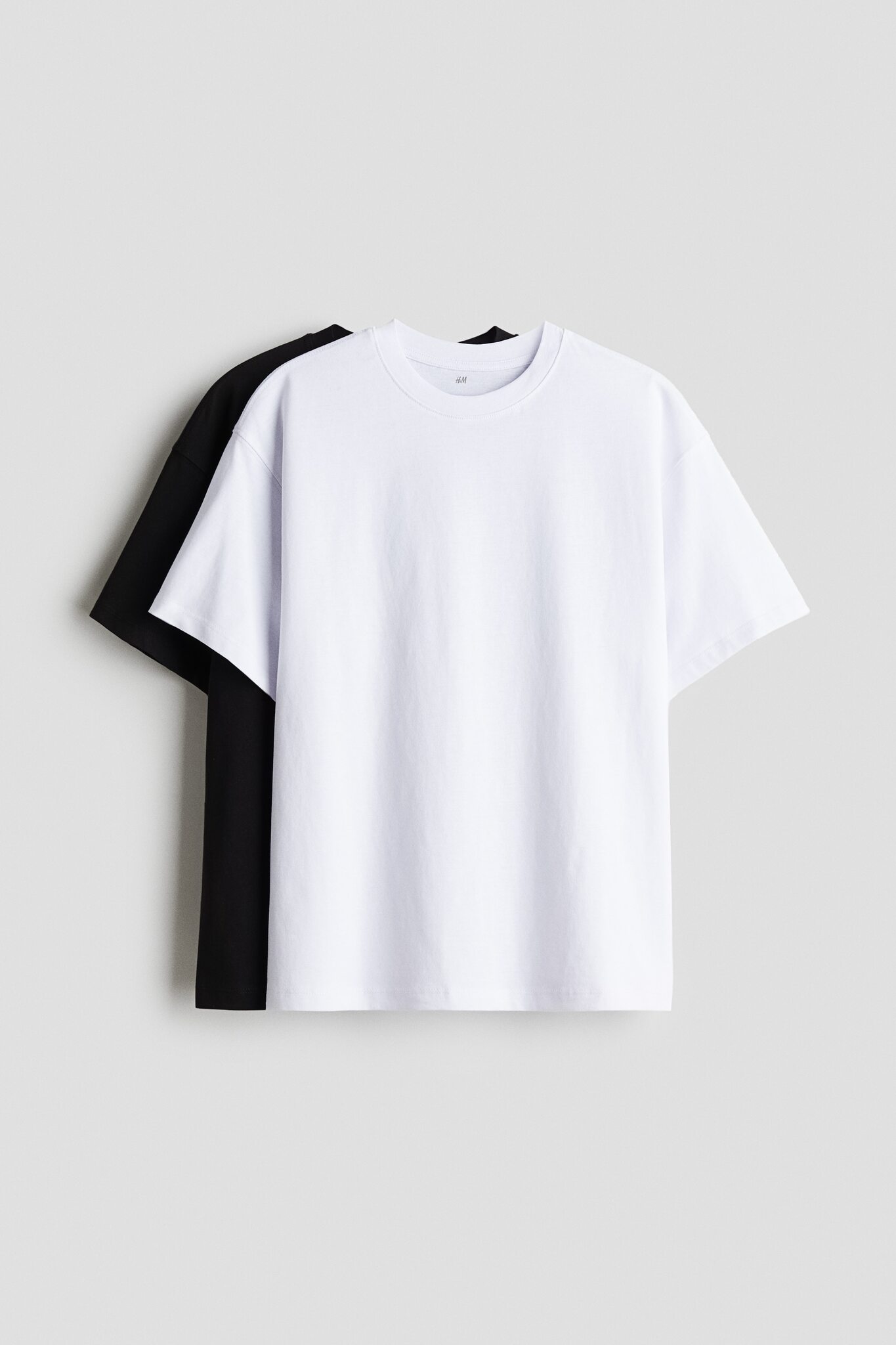 Футболки оверсайз из мягкого хлопкового трикотажа с круглым вырезом и спущенными плечами.