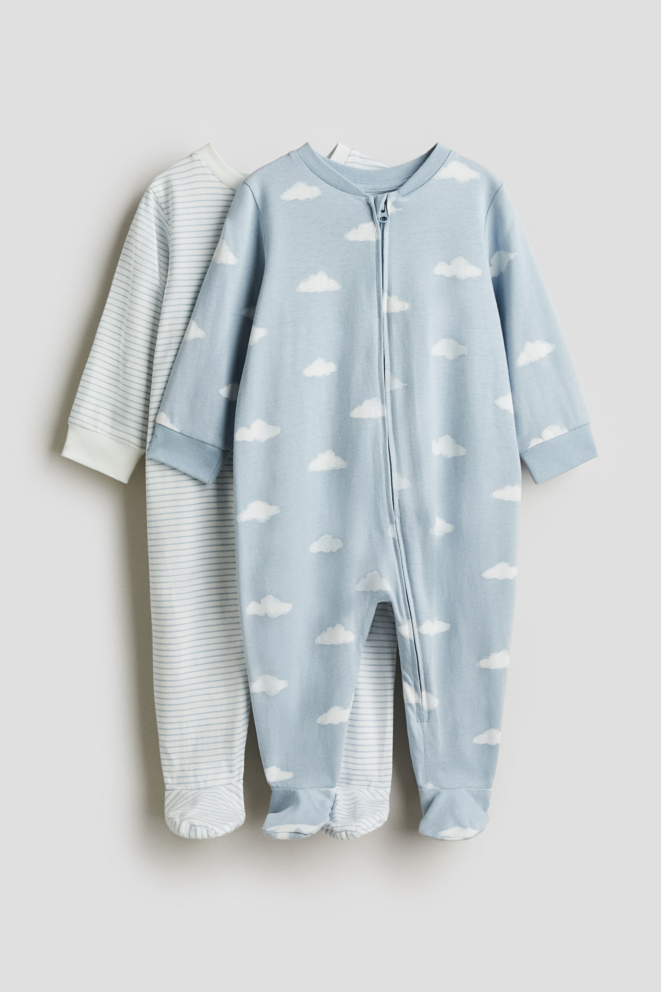 H&M Набор из двух хлопковых пижам с принтом, светло-голубой