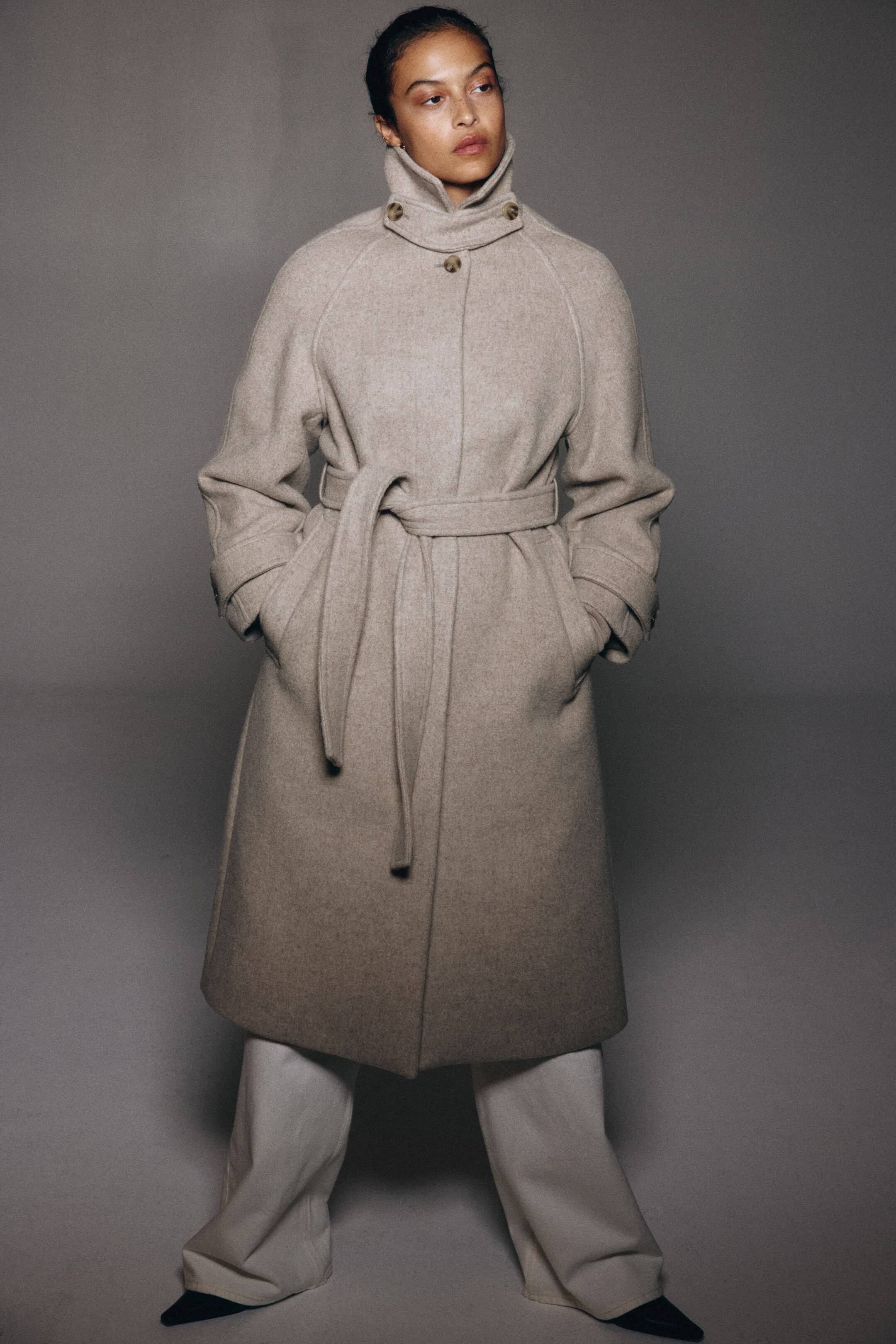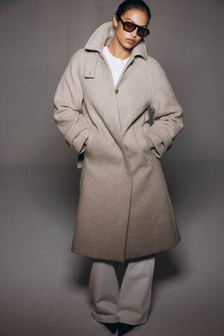 H&M Пальто свободного кроя из смесовой шерсти, светло-бежевый