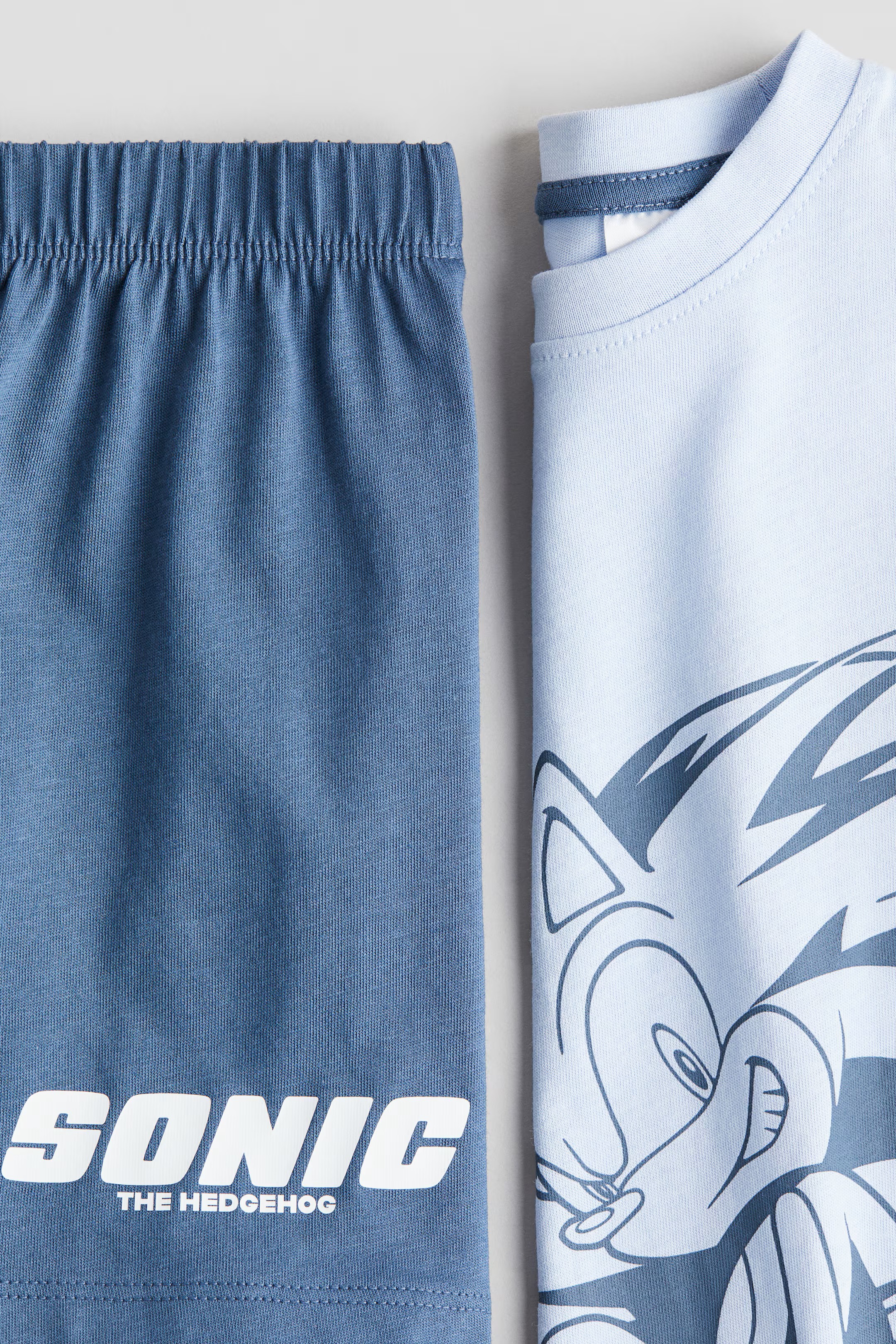 Пижамный комплект из мягкого трикотажа с принтом. Топ с коротким рукавом. Шорты на резинке на талии.