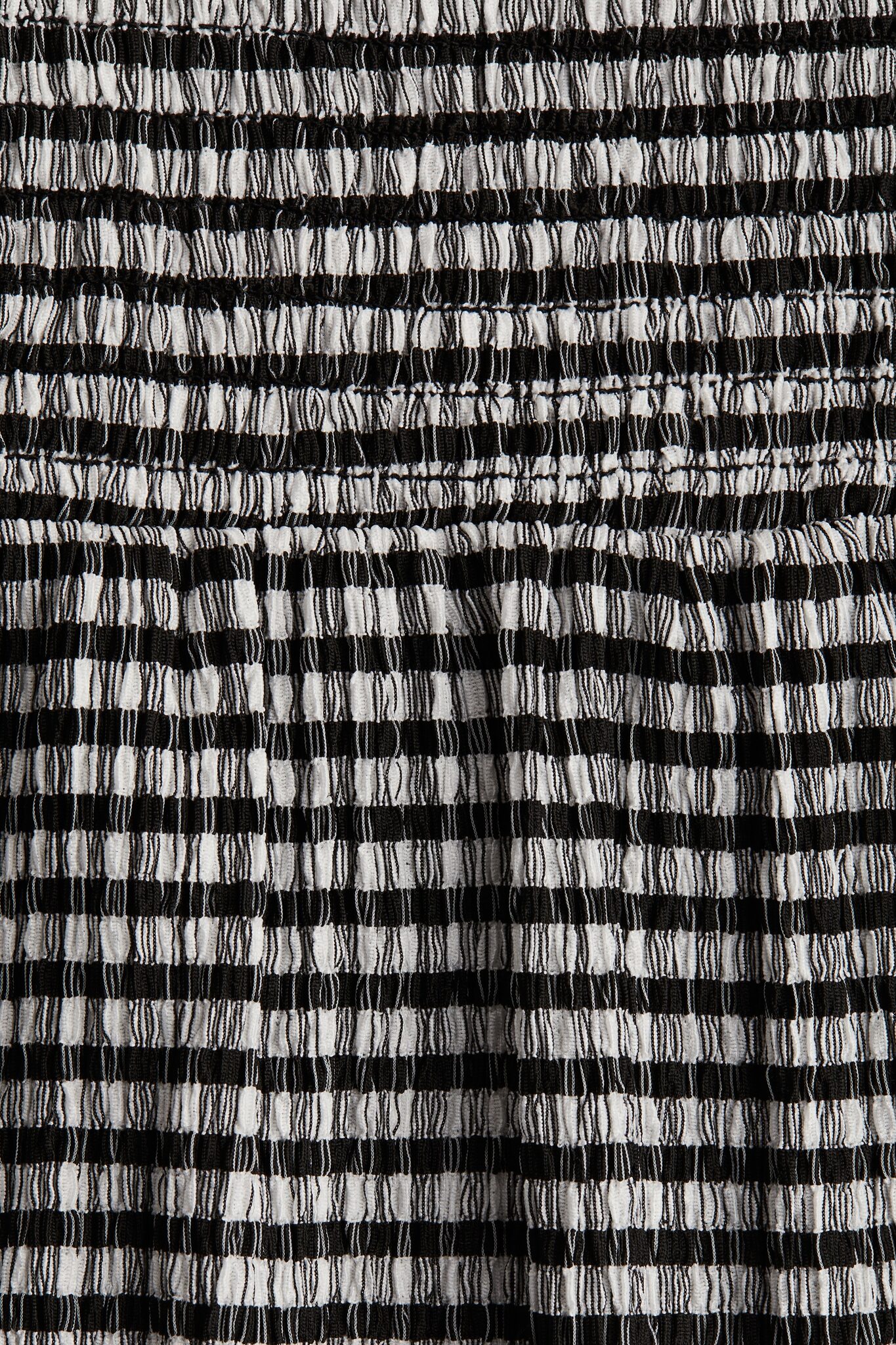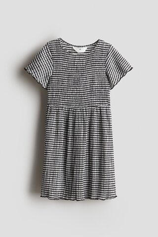 Платье из жатого трикотажа с присборенным лифом спереди. Круглый вырез, короткие рукава и присборенная талия. На подкладке.