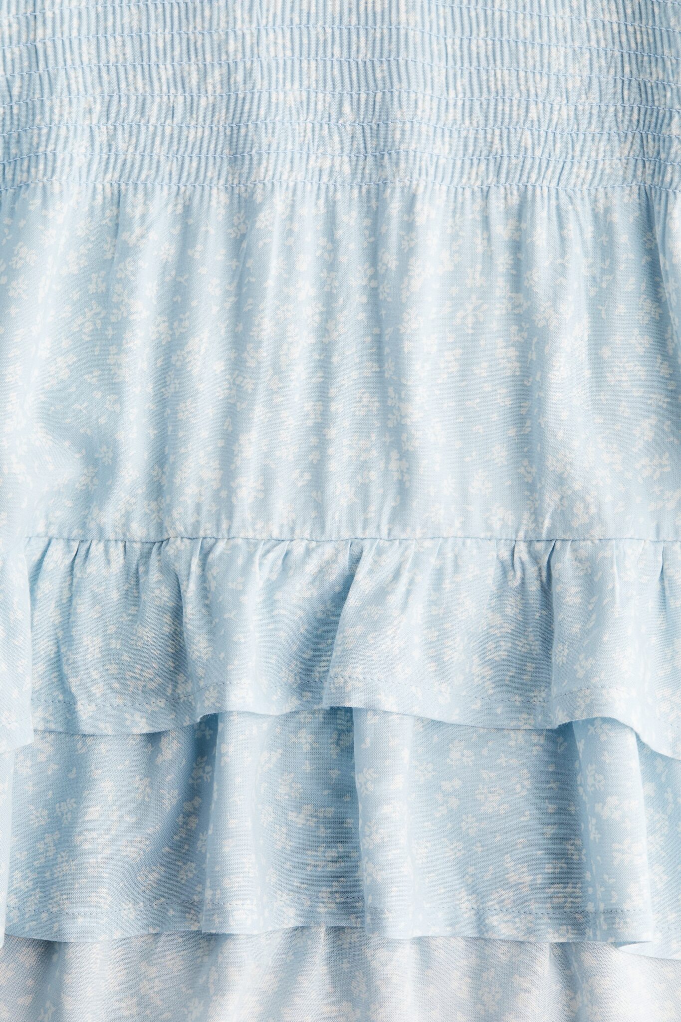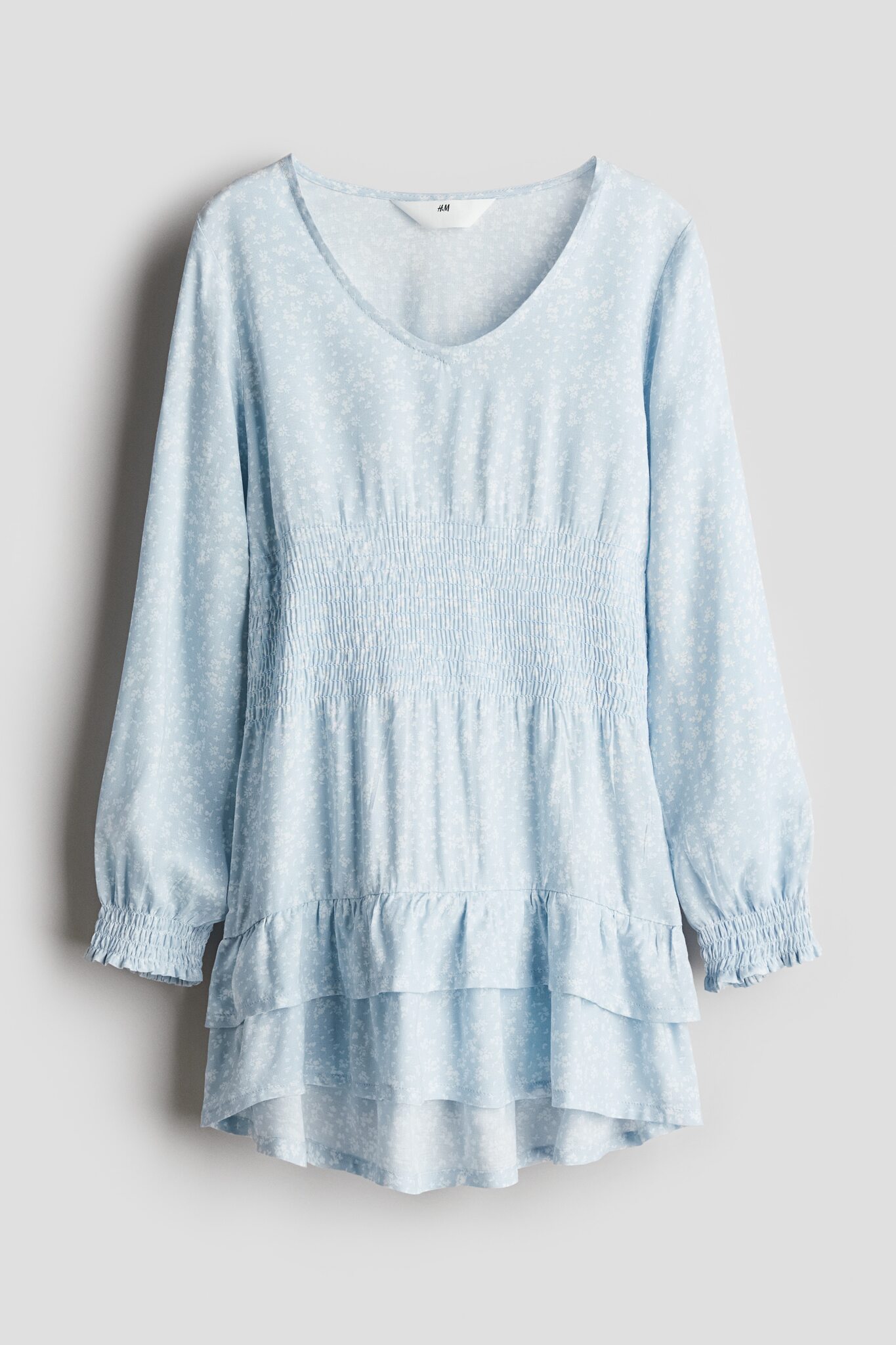 Платье из мягкой, воздушной вискозной ткани с принтом по всей поверхности. V-образный вырез, длинные рукава, сборки на талии и манжетах, оборка по подолу.