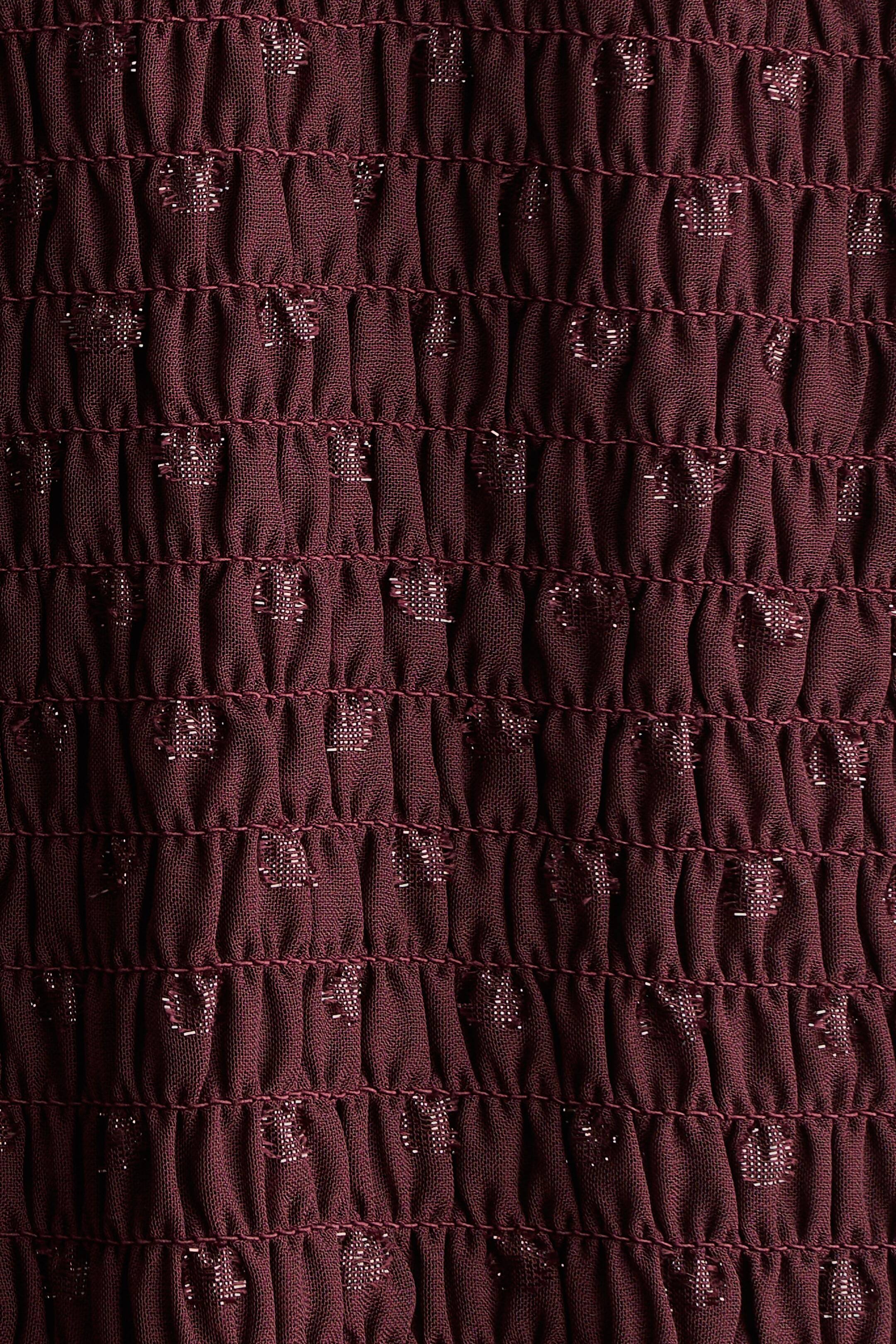 Многослойное платье из блестящей жаккардовой ткани с присборенным лифом и юбкой с воланами. Квадратный вырез, регулируемые бретели, подкладка.