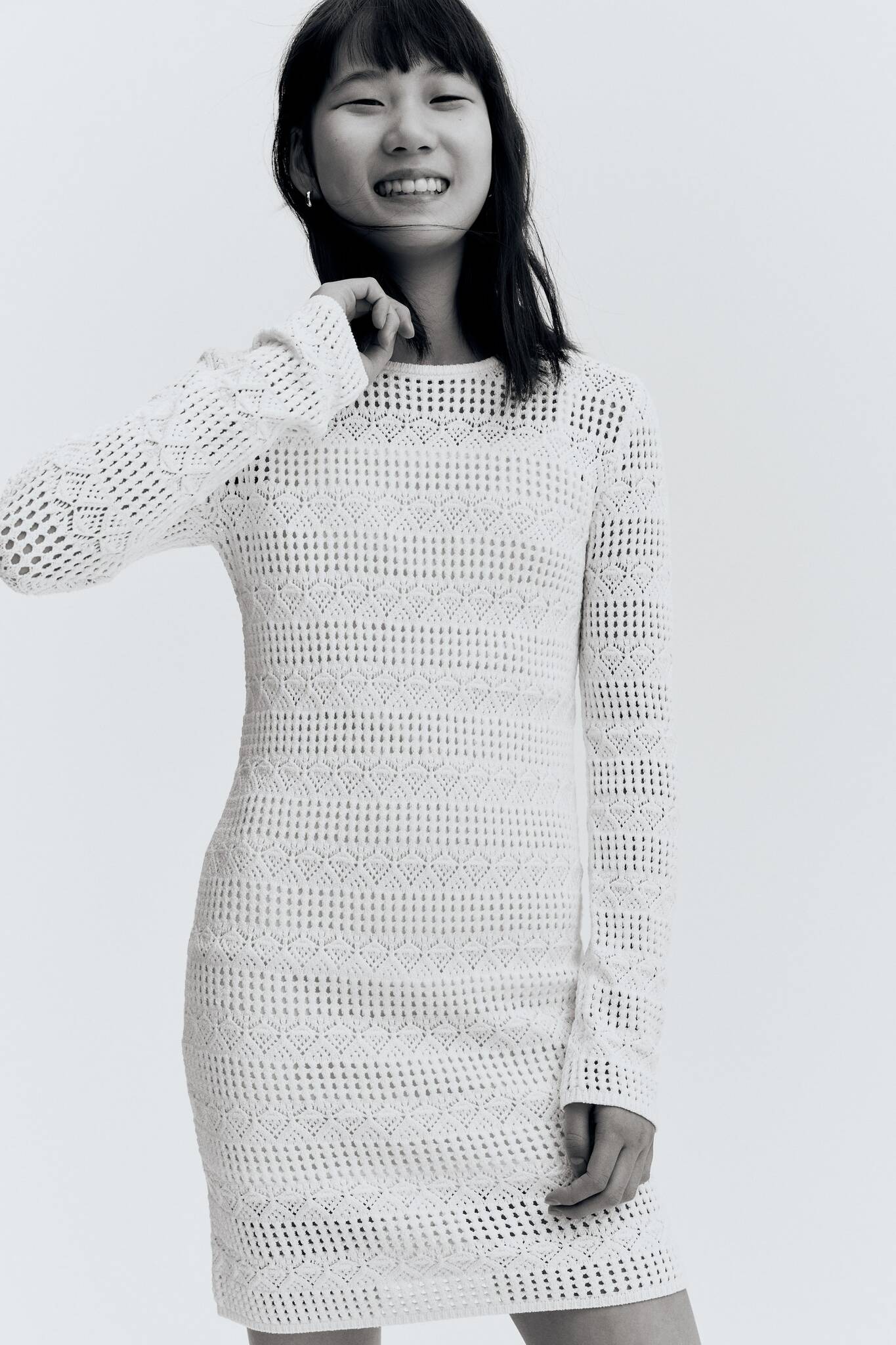 Круглый вырез, длинные рукава, платье из трикотажного полотна с нижним платьем из мягкого трикотажа.