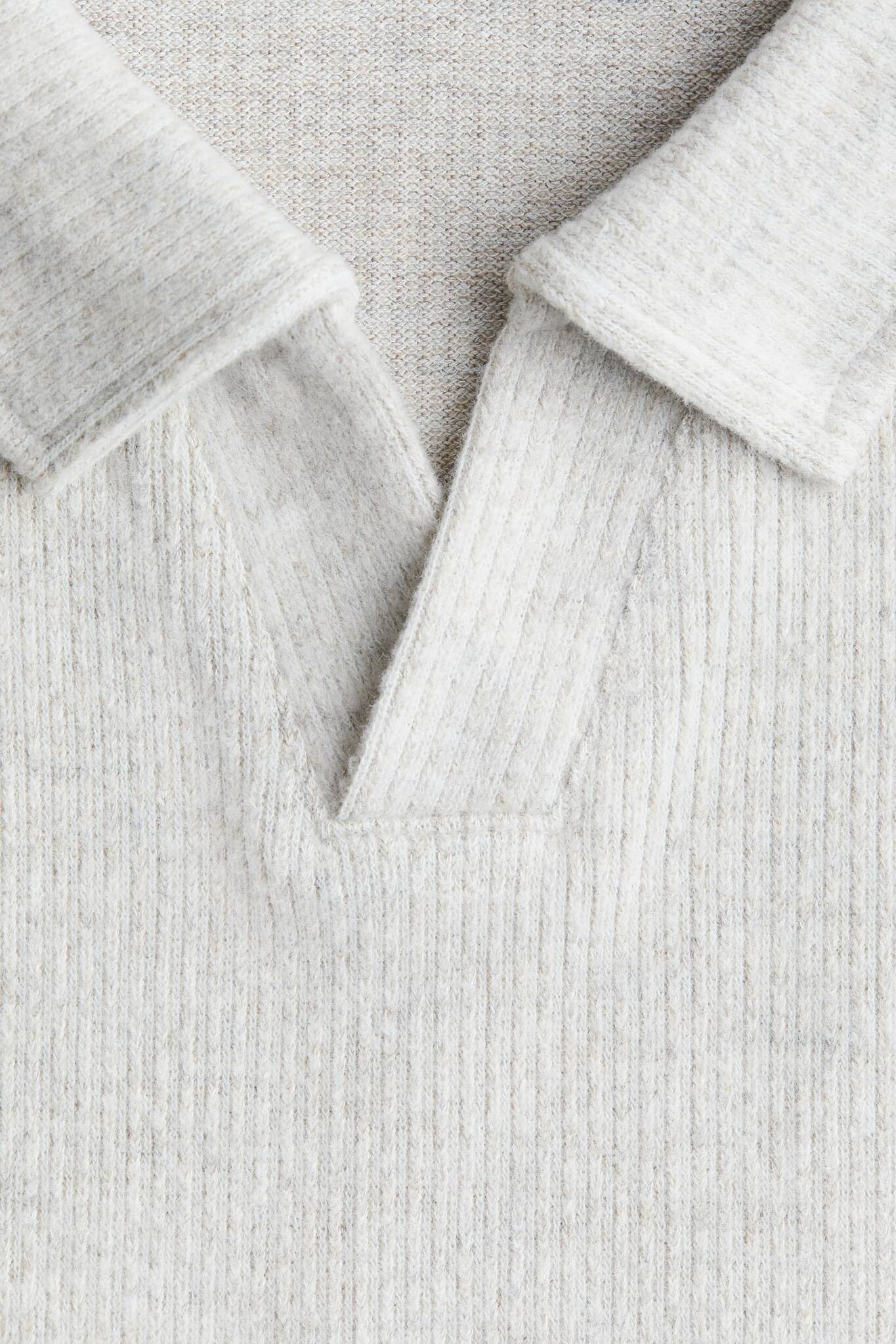 Поло из прочного трикотажного джерси с V-образным вырезом, спущенной линией плеча, длинными рукавами и резинкой на манжетах и подоле.