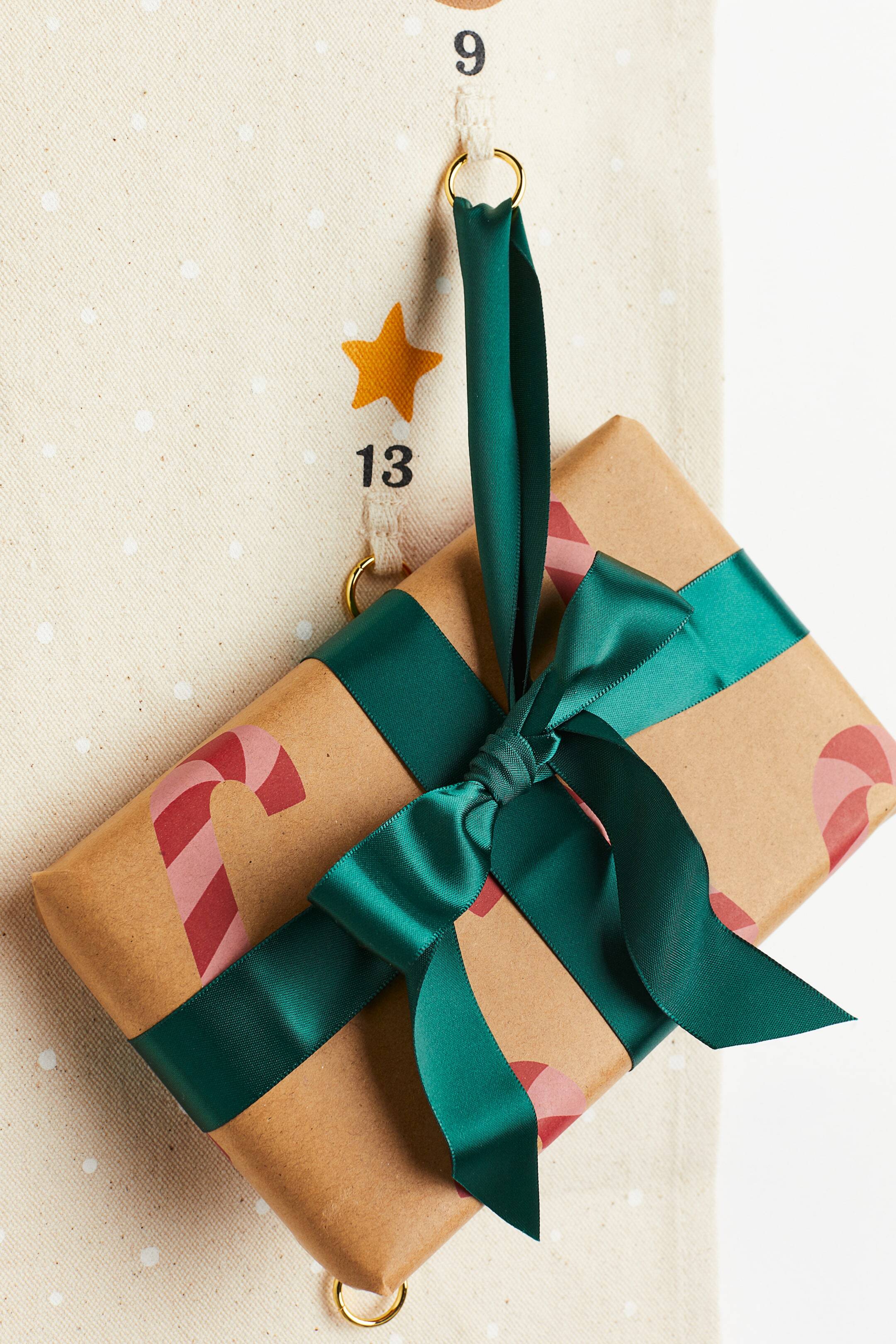 Адвент-календарь из хлопкового полотна с 24 кольцами для подвешивания подарков. С отверстием вверху для удобного подвешивания. Шурупы в комплект не входят. Размер примерно 40x80 см.