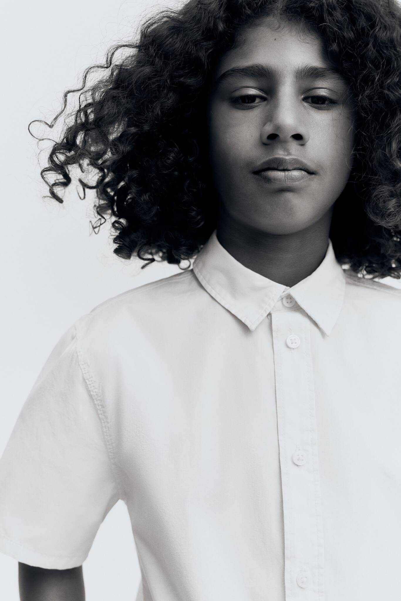 Рубашка с короткими рукавами из хлопкового поплина, отложным воротником и пуговицами спереди.
