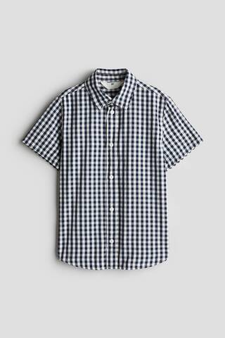 H&M Рубашка из хлопка с коротким рукавом, темно-синий