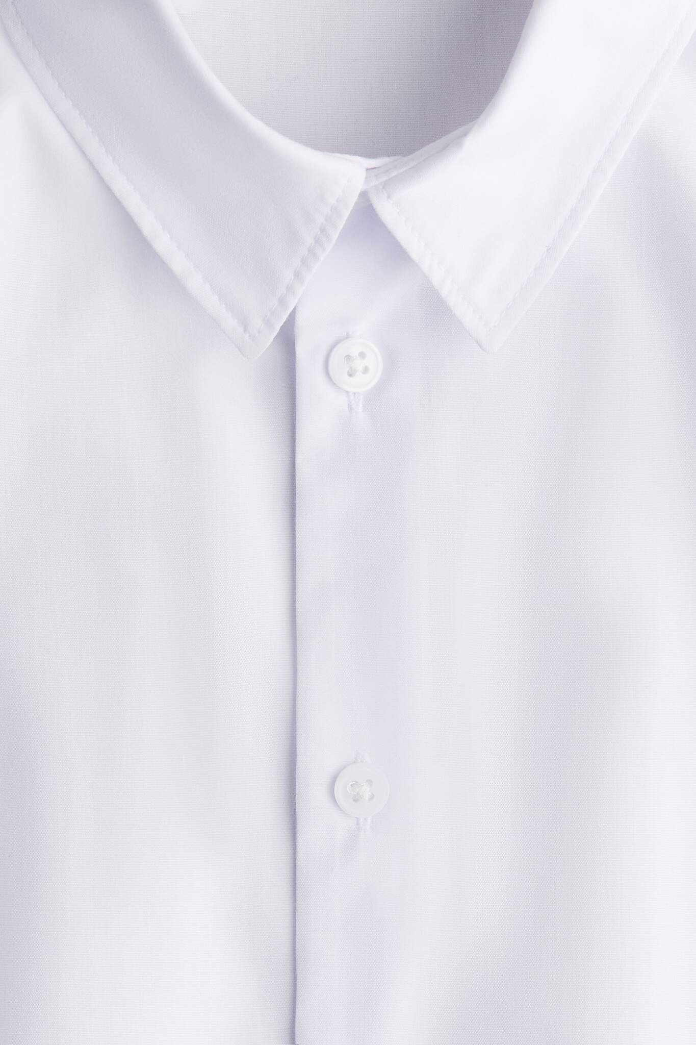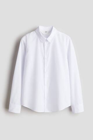 Рубашка из лёгкого поплина с отделкой, которую легко гладить. Отложной воротник, длинные рукава, застёжка на пуговицы спереди и на манжетах, закруглённый подол.