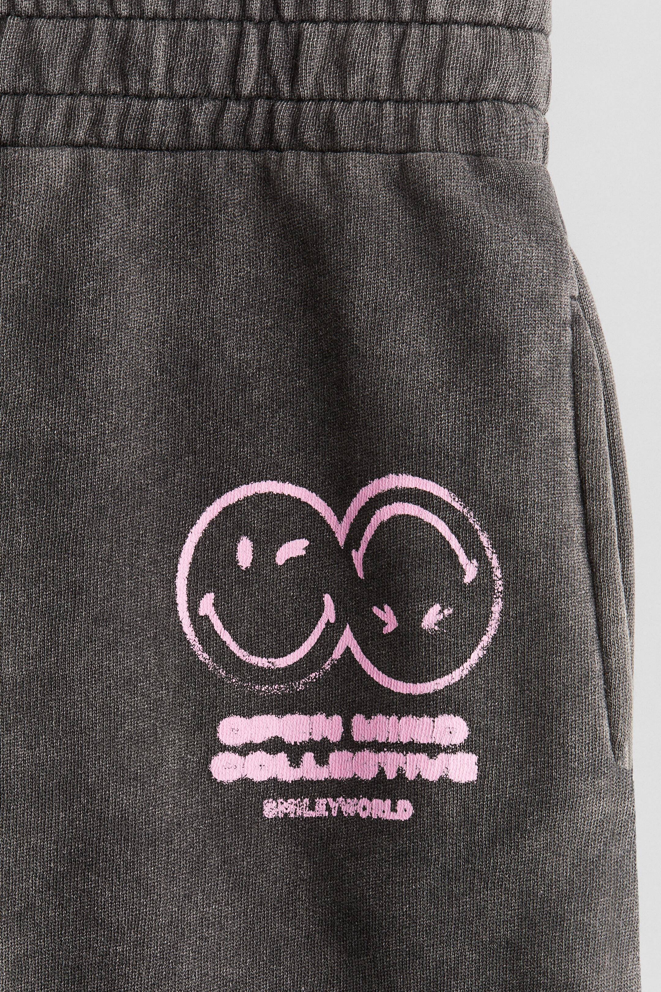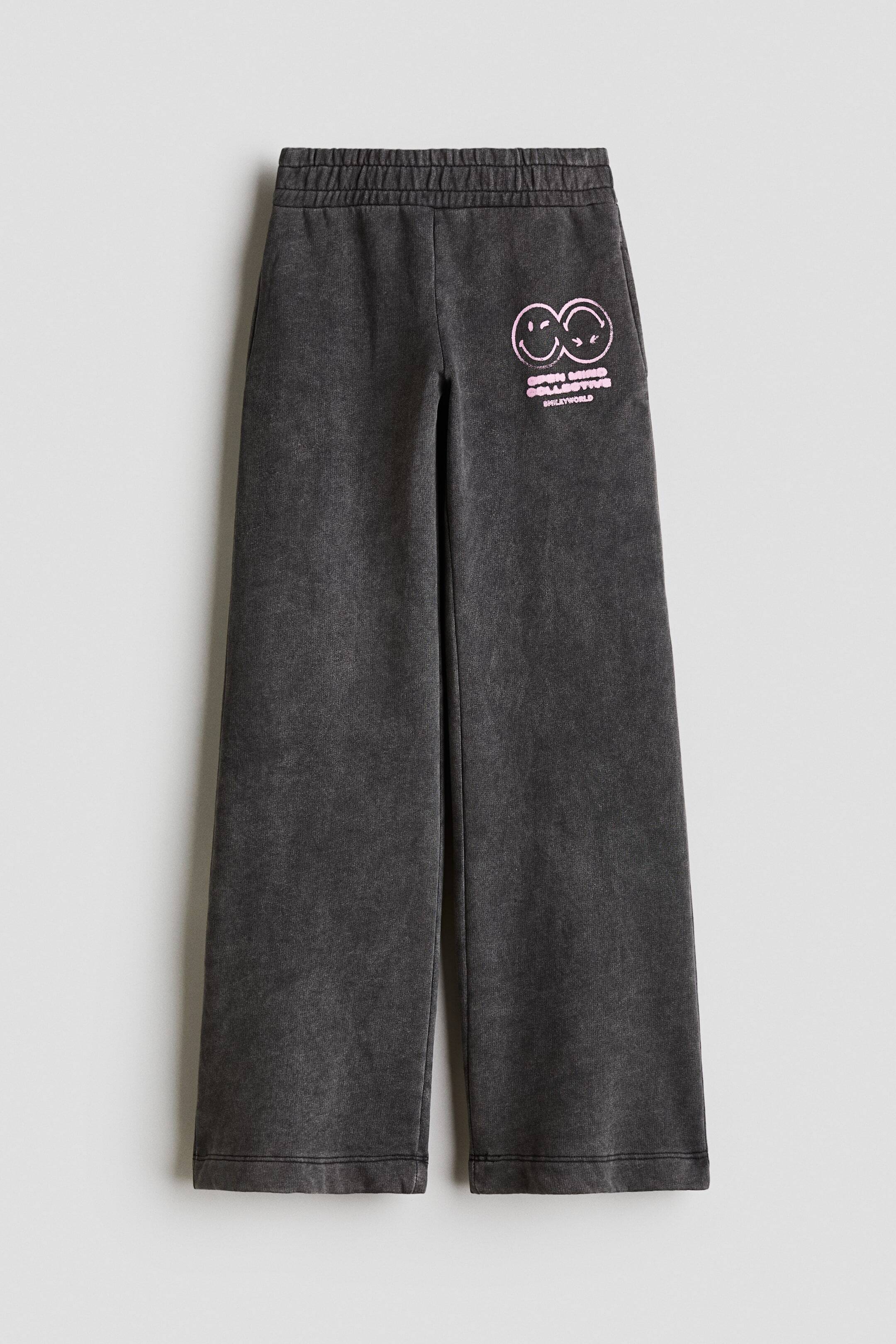 Джоггеры из мягкой толстовочной ткани на флисовой подкладке с набивным рисунком. Талия на резинке со шнурком, потайные боковые карманы и широкие брючины.