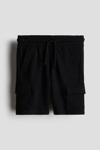Карго-шорты длиной до колена, изготовленные из мягкой флисовой ткани. Имеют эластичный пояс со шнурком, декоративную планку, диагональные передние карманы и накладные карманы на штанинах.