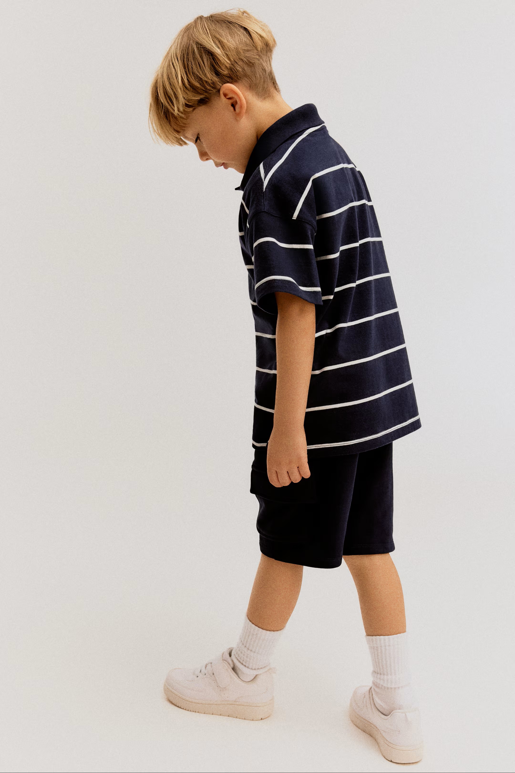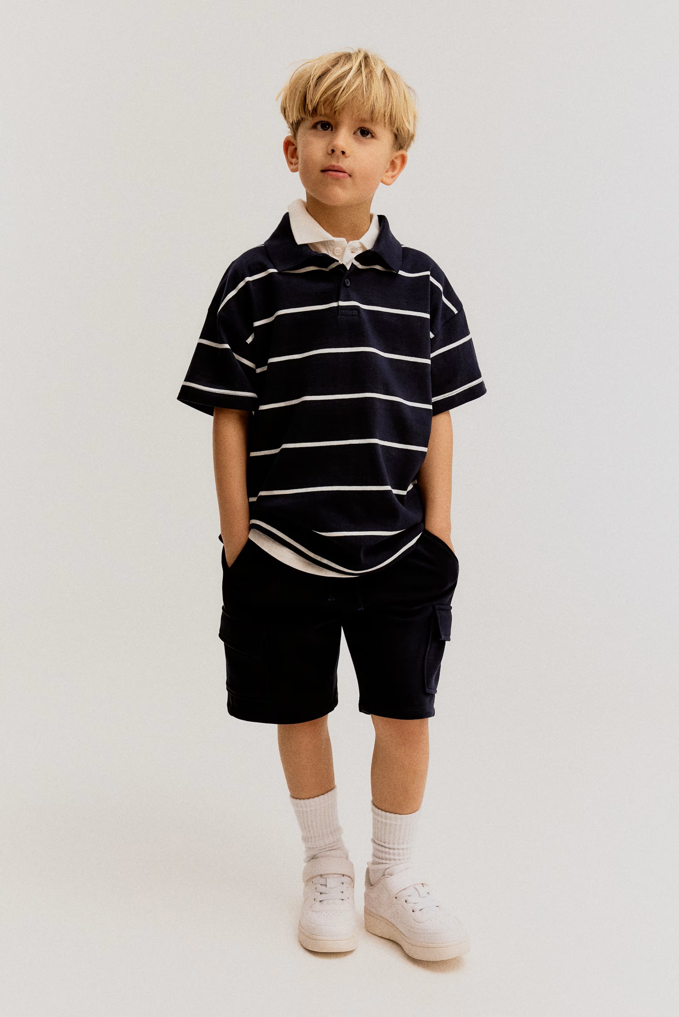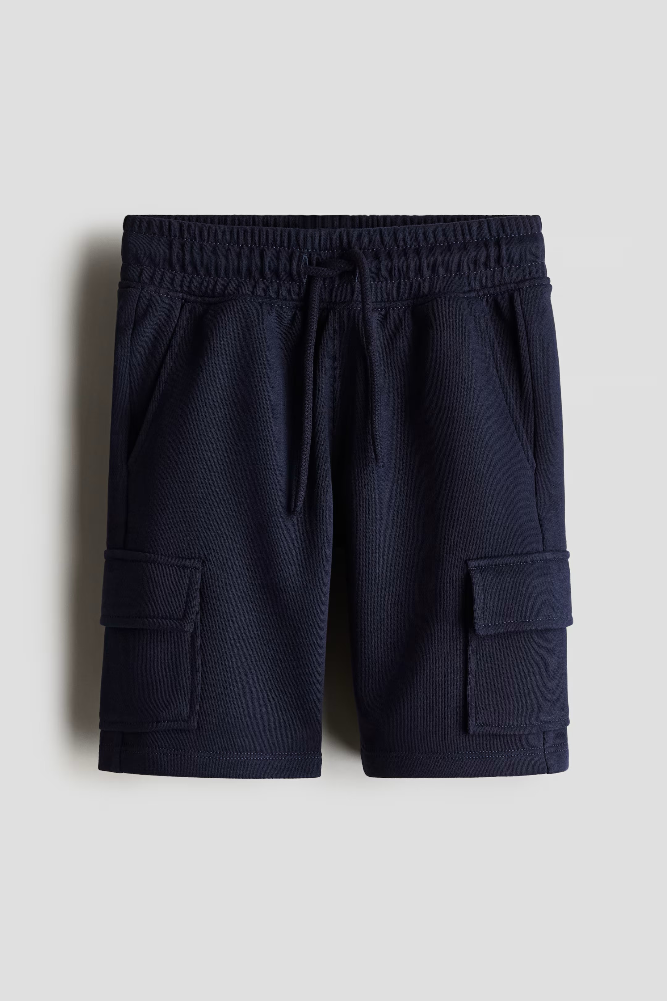 Карго-шорты длиной до колена, изготовленные из мягкой флисовой ткани. Имеют эластичный пояс со шнурком, декоративную планку, диагональные передние карманы и накладные карманы на штанинах.