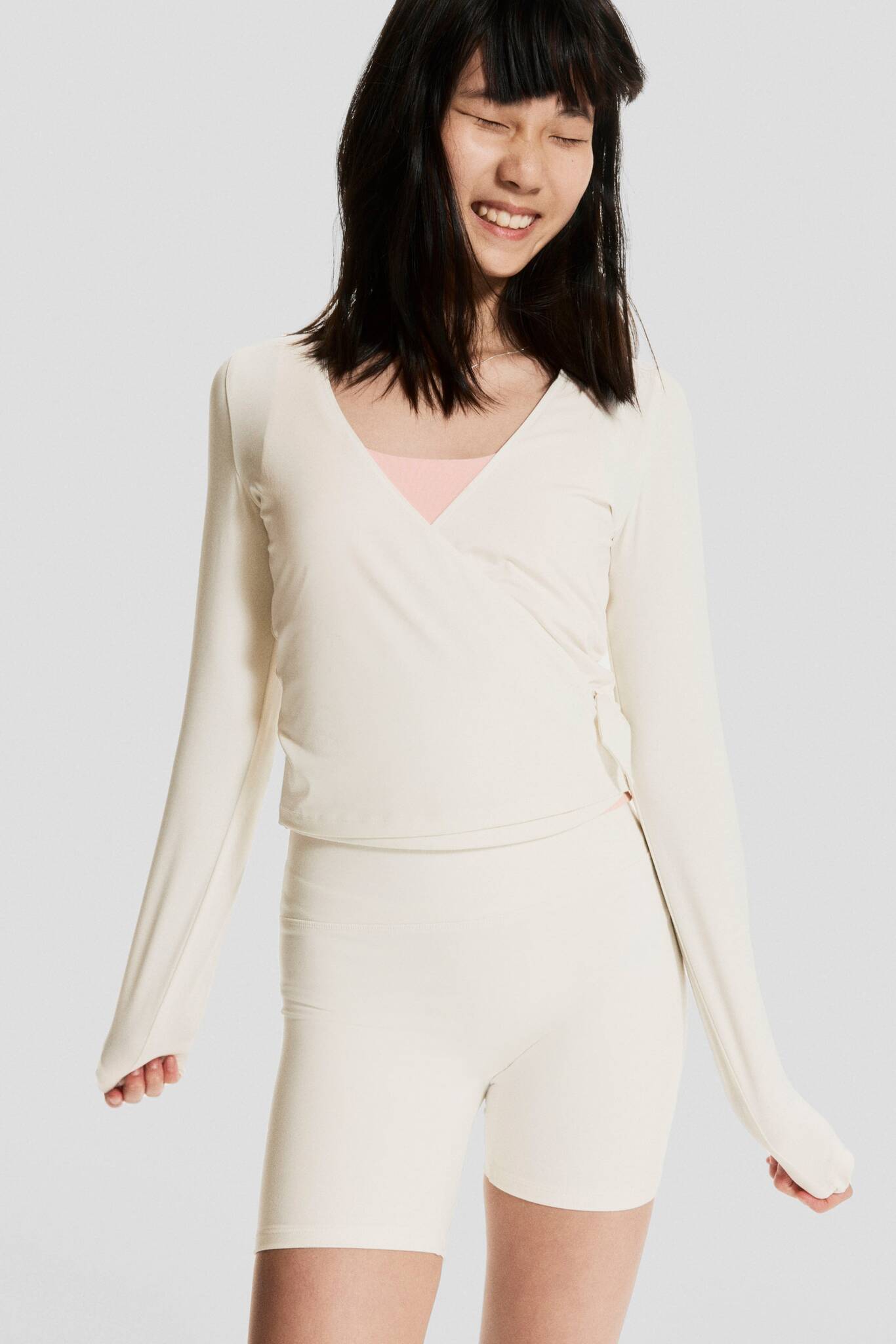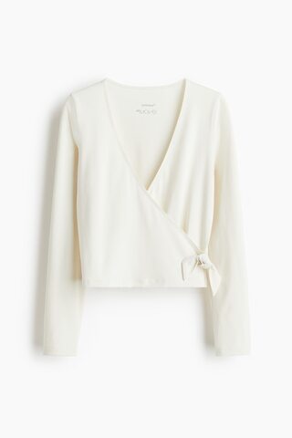 H&M Спортивный топ SoftMove™ с запахом, цвет слоновой кости