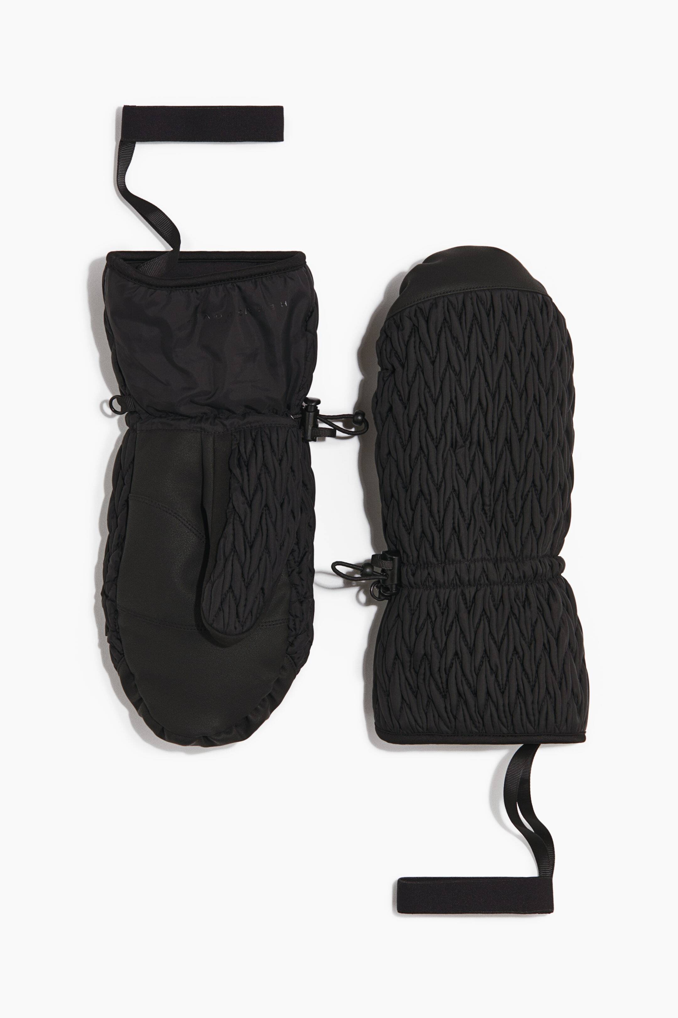 Стёганые лыжные перчатки с эластичными шнурками и пластиковой застёжкой для фиксации. Внутренние ремешки на запястьях предотвращают падение или потерю перчаток. На подкладке.