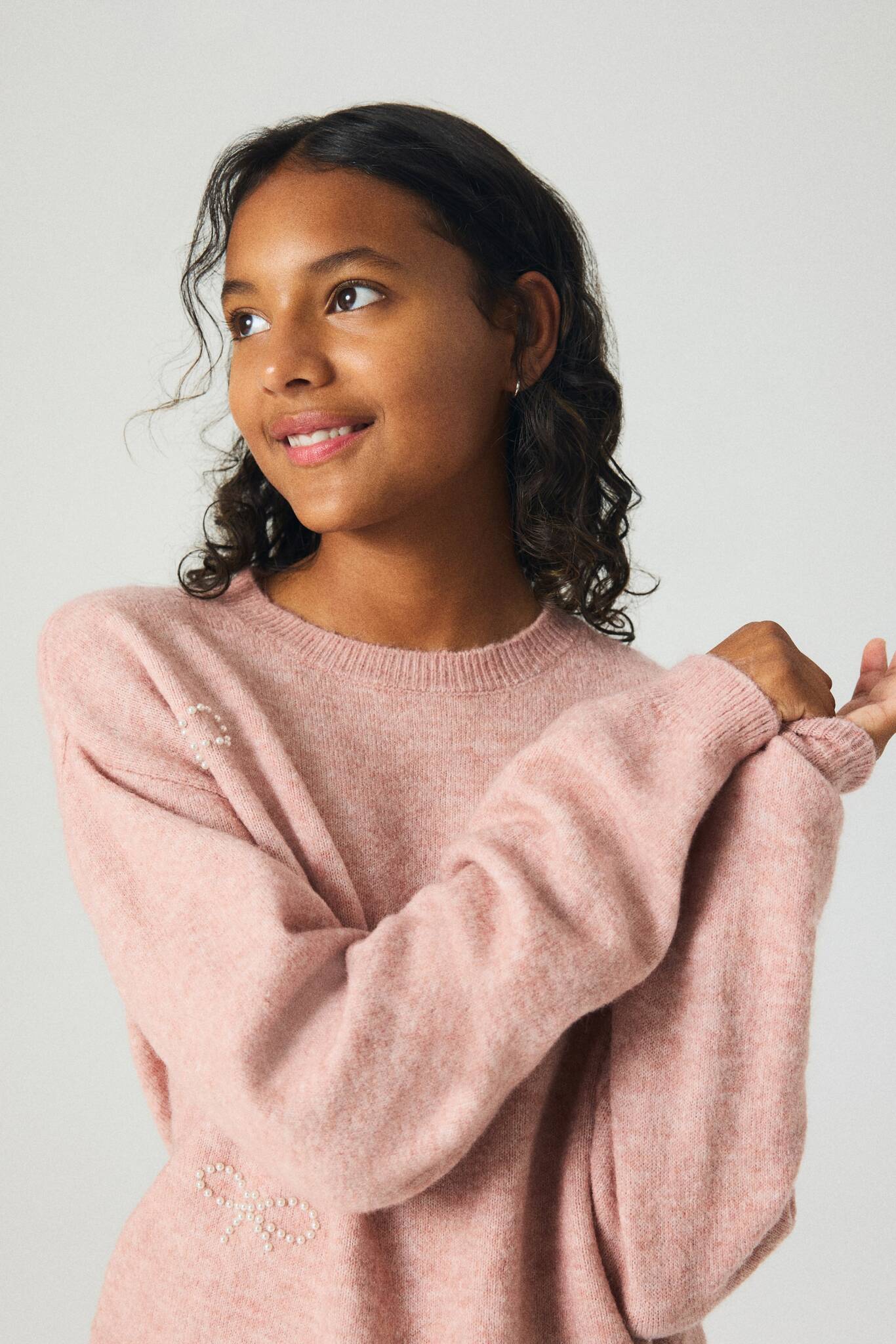 H&M Свитер свободного кроя с принтом, пыльно-розовый