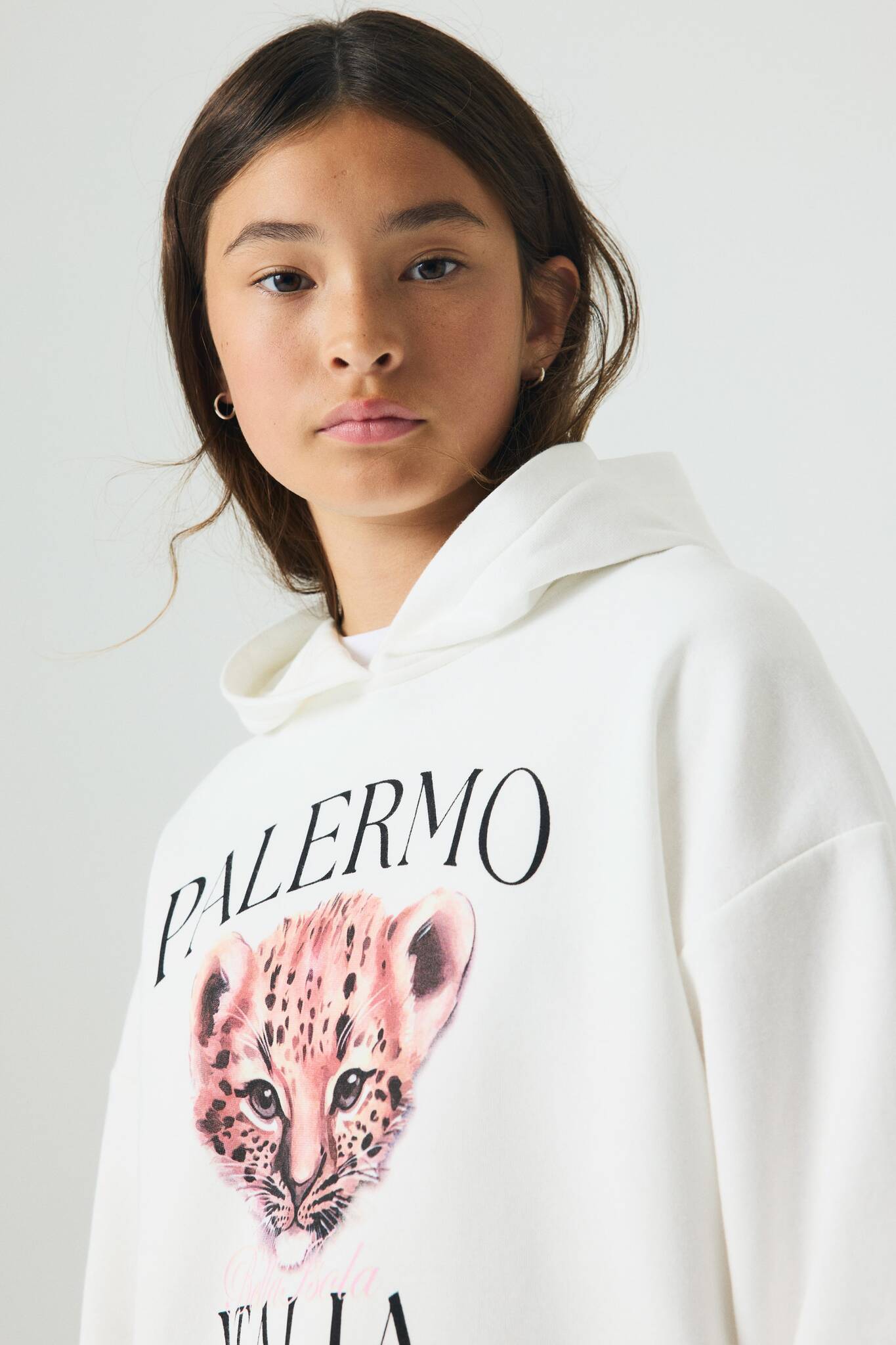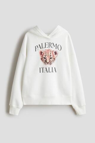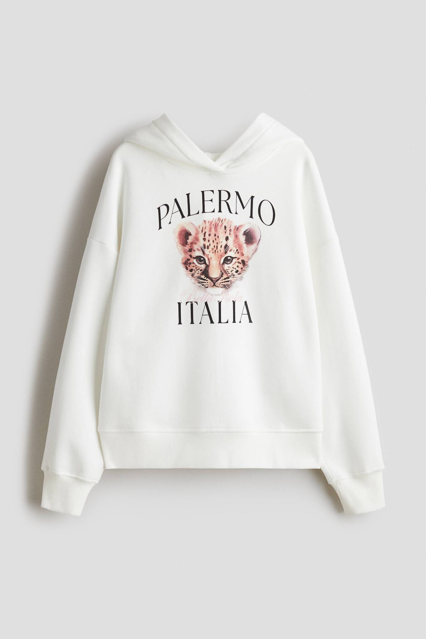 H&M Толстовка оверсайз с капюшоном и принтом, белый