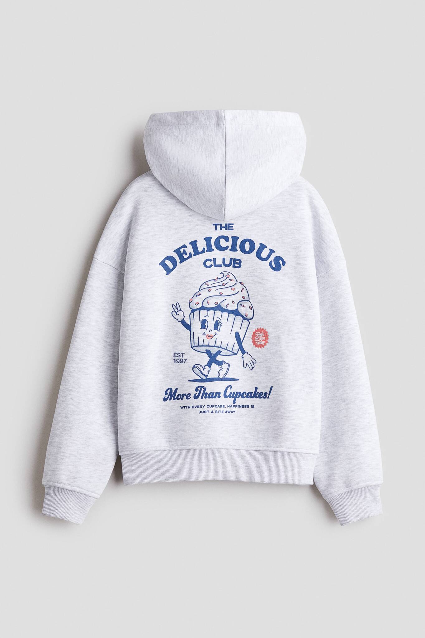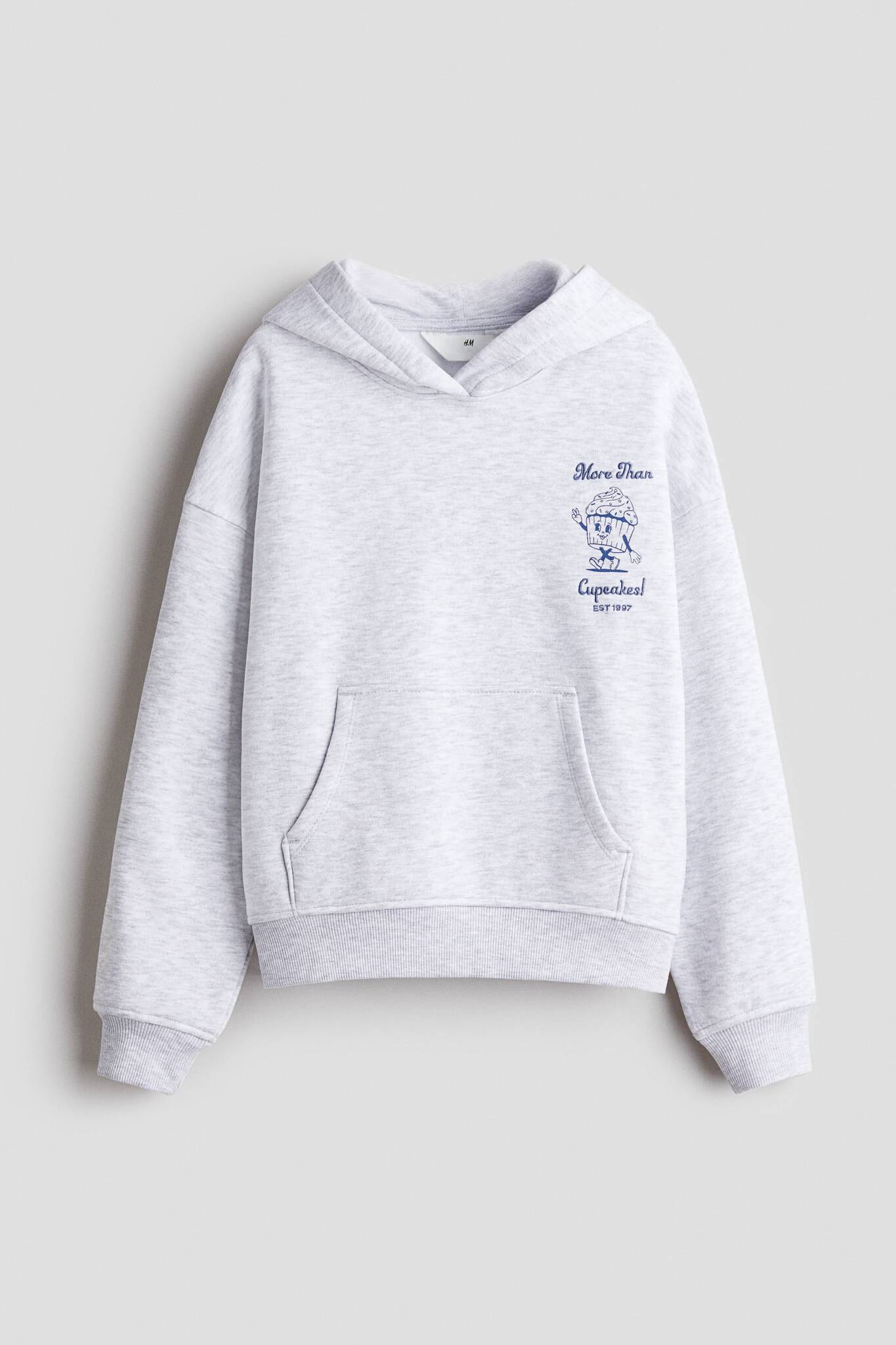 H&M Толстовка оверсайз с капюшоном и принтом, светло-серый меланж