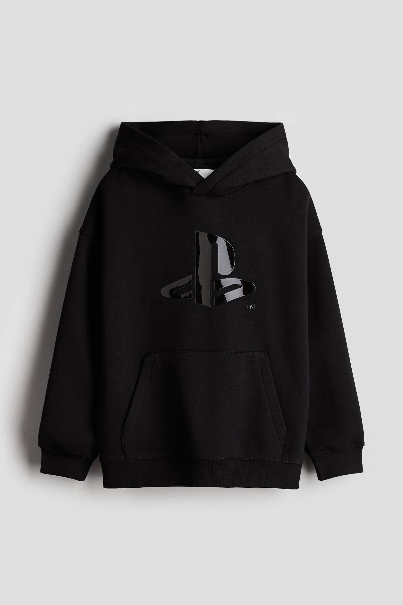 Свободный крой с капюшоном из трикотажной ткани с вышитым рисунком спереди и мягкой флисовой подкладкой. Капюшон на трикотажной подкладке с запахом спереди, заниженные плечи и карман-кенгуру спереди. Длинные рукава с резинкой на манжетах и подоле.