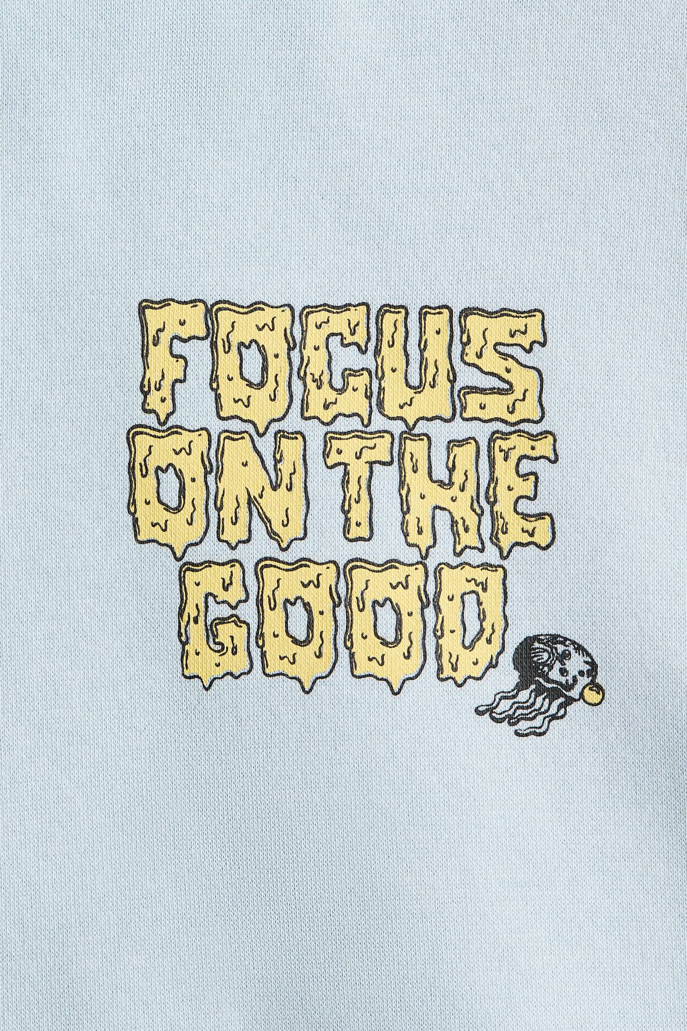 Свободный крой с капюшоном из трикотажной ткани с вышитым рисунком спереди и мягкой флисовой подкладкой. Капюшон на трикотажной подкладке с запахом спереди, заниженные плечи и карман-кенгуру спереди. Длинные рукава с резинкой на манжетах и подоле.
