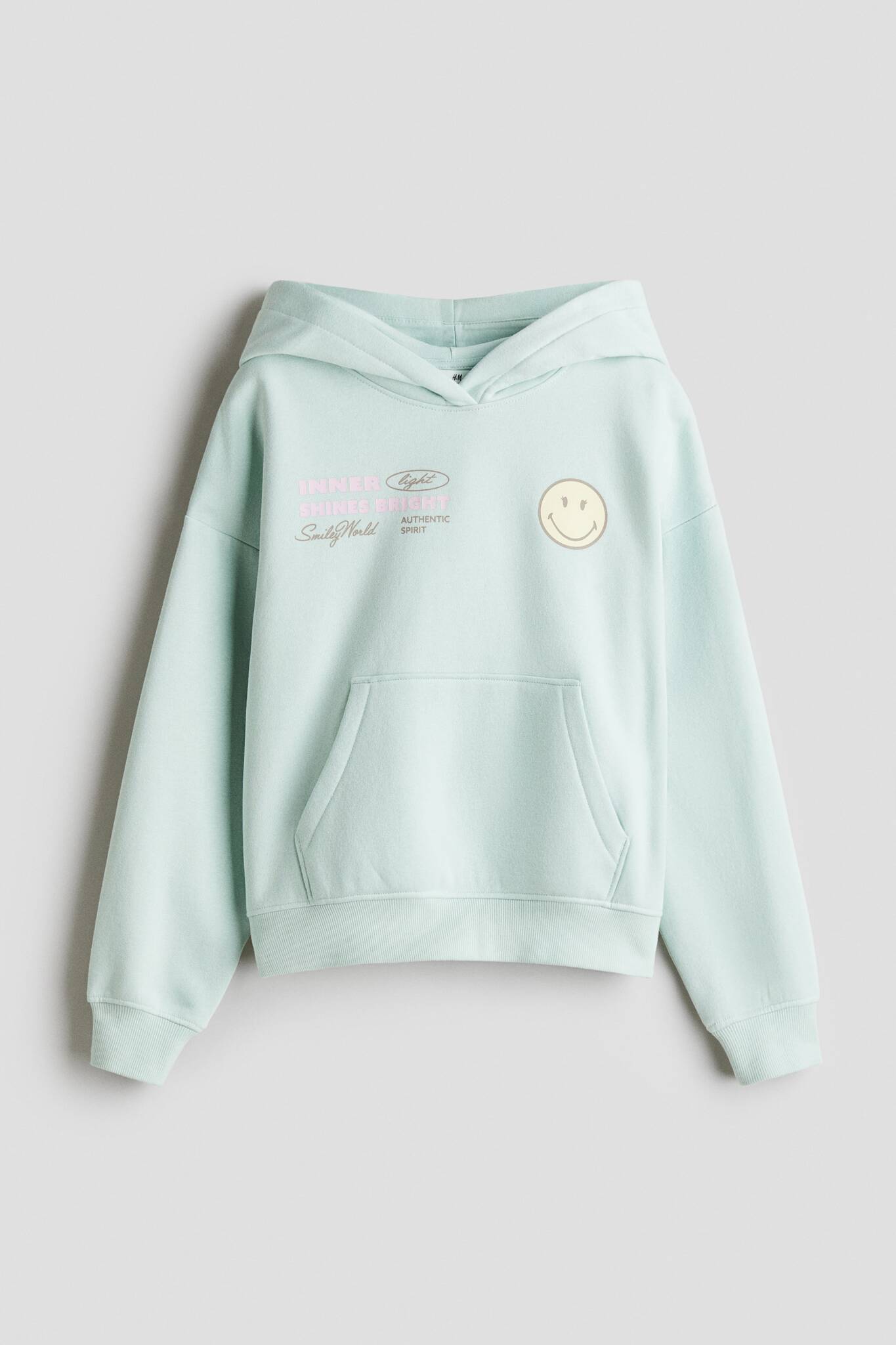 H&M Толстовка с капюшоном и принтом, мятно-зеленый