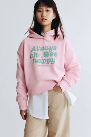 H&M Толстовка с капюшоном и принтом, розовый