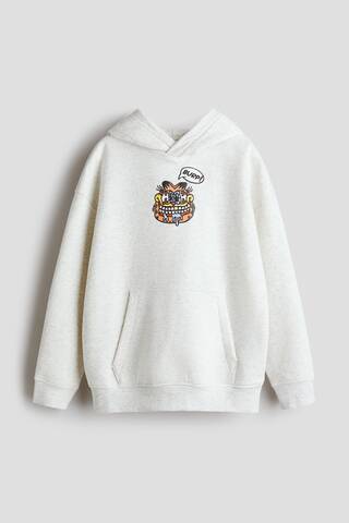 H&M Толстовка с капюшоном и принтом, светло-серый меланж
